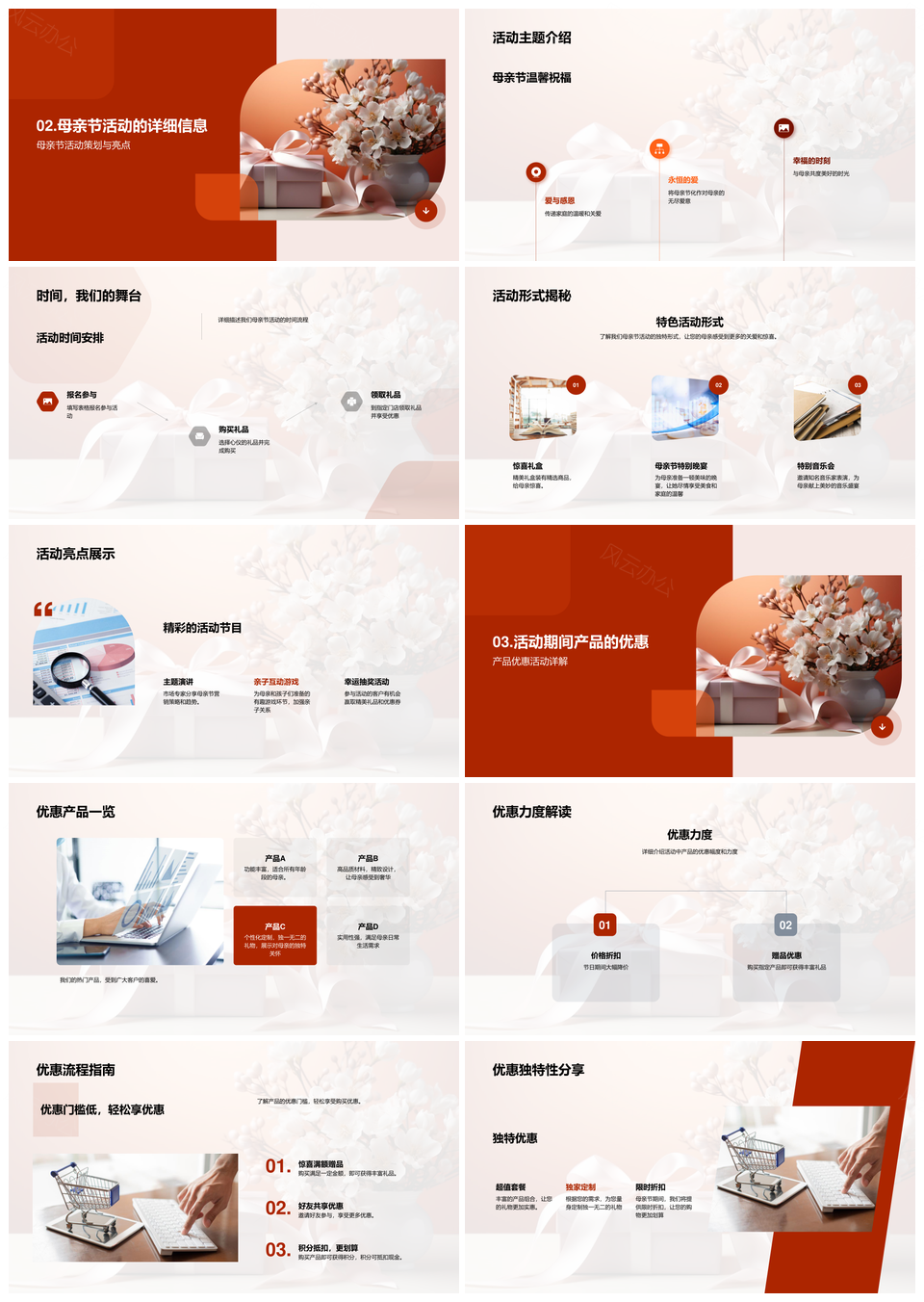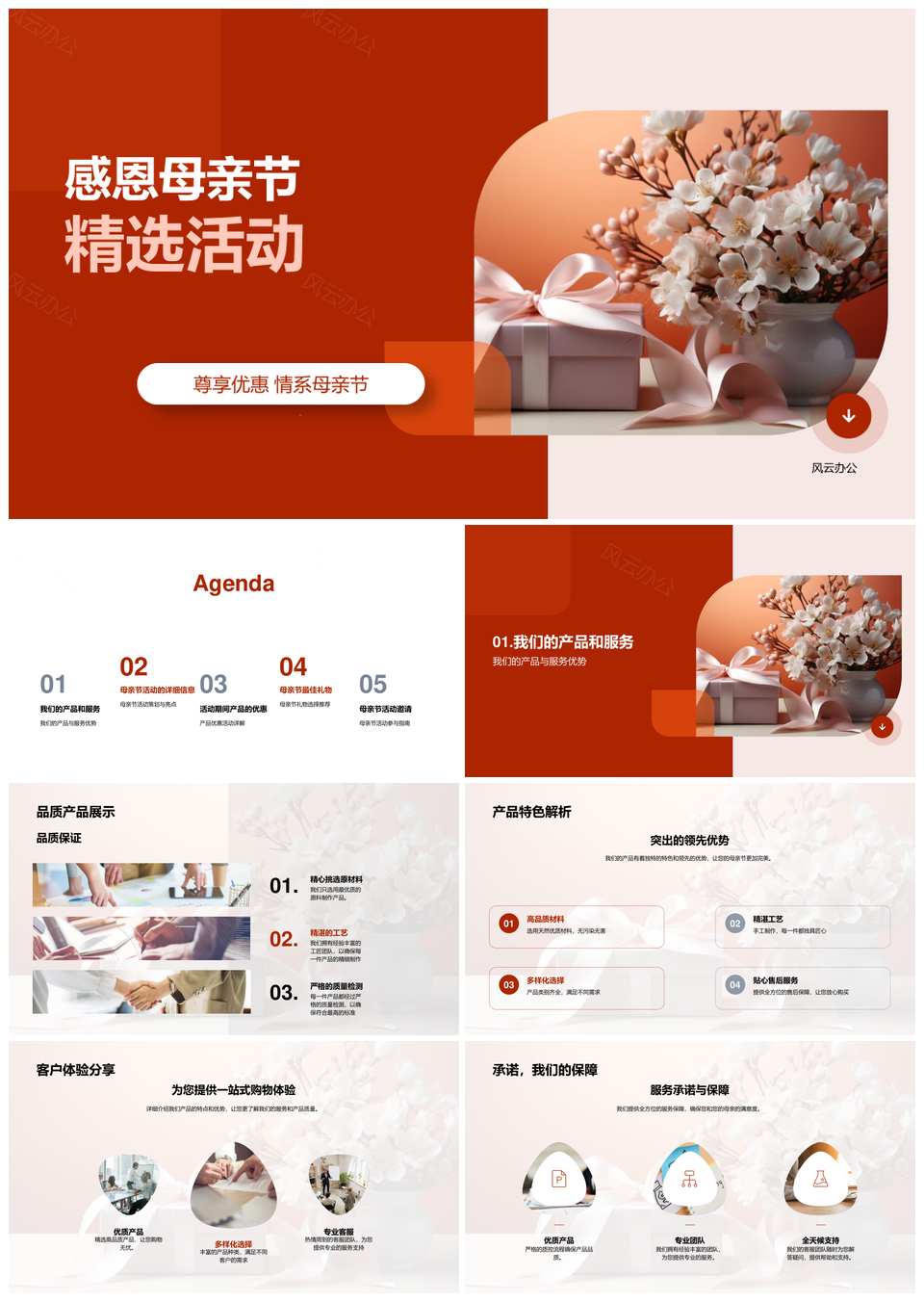 风云办公提供的母亲节活动优惠精选花束礼物献礼PPT模板,下载格式为pptx,一共28页,作品中文字及图均可以修改和编辑,图片更改请在作品中右键图片并更换,文字修改请直接点击文字进行修改。
