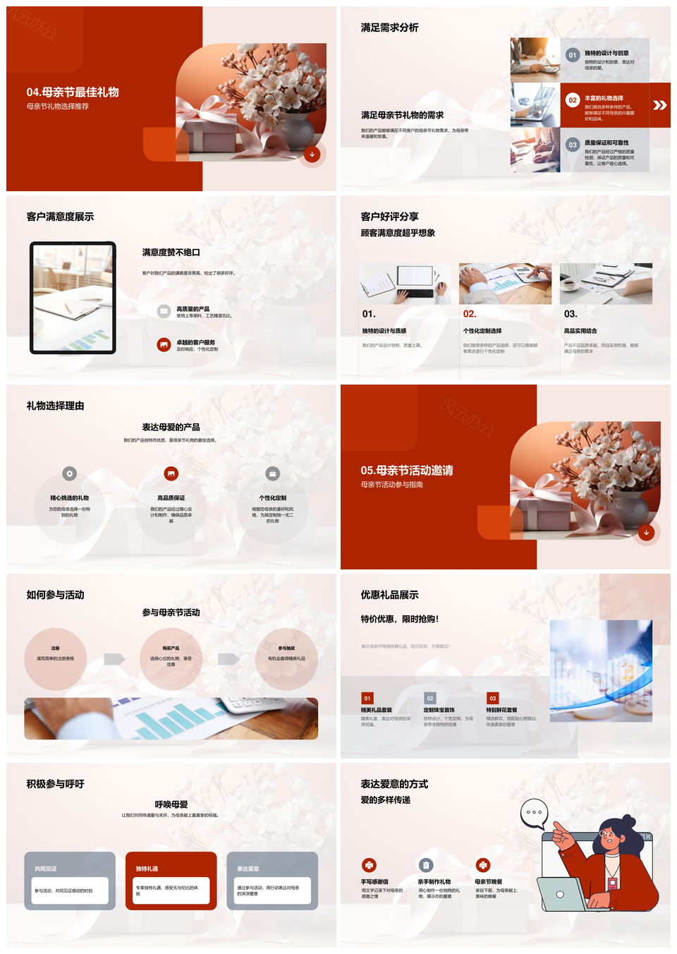 这是一张母亲节活动优惠精选花束礼物献礼PPT模板,包含母亲节、活动、优惠、精选、花束、礼物、献礼等主题内容,也可用作母亲节活动优惠精选、母亲节优惠精选花束、活动优惠精选花束、优惠精选花束礼物、精选花束礼物献礼、母亲节活动优惠、活动优惠精选、优惠精选花束、精选花束礼物、花束礼物献礼、母亲节精选花束、母亲节花束礼物、精选花束献礼、母亲节礼物献礼、优惠花束礼物等PPT场景使用。