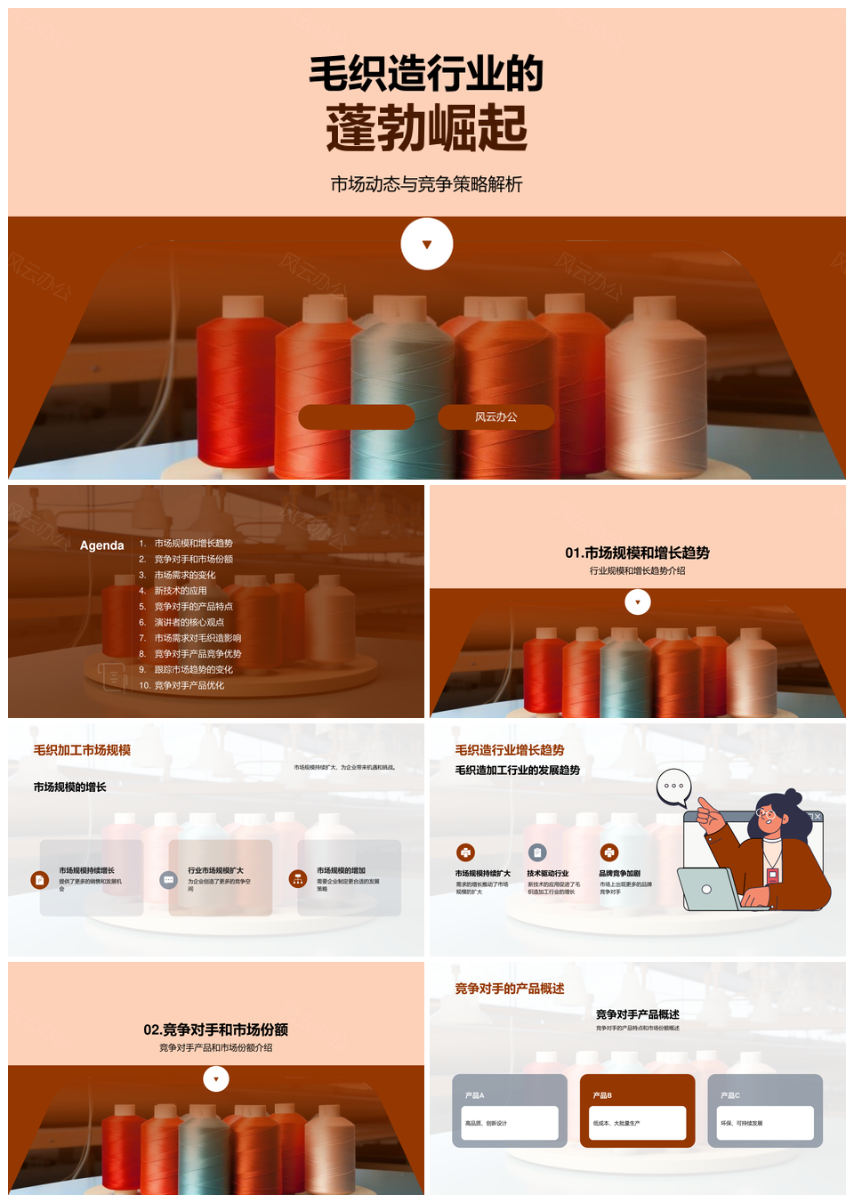 这是一张毛织造行业市场规模增长纺纱机新技术竞争分析PPT模板,包含毛织造行业、市场规模、增长、纺纱机、新技术、竞争分析等主题内容,也可用作毛织造行业市场规模增长纺纱机新技术、毛织造行业市场、毛织造行业市场规模、行业市场规模增长、纺纱机新技术竞争分析、纺纱机新技术竞争、纺纱机新技术、市场规模增长纺纱机新技术、规模增长纺纱机、纺纱机新技术竞争分析、增长纺纱机新技术、规模增长纺纱机新技术、纺纱机新技术竞争分析、行业市场规模、规模增长纺纱机新技术等PPT场景使用。 风云办公提供的毛织造行业市场规模增长纺纱机新技术竞争分析PPT模板,下载格式为pptx,一共34页,作品中文字及图均可以修改和编辑,图片更改请在作品中右键图片并更换,文字修改请直接点击文字进行修改。
