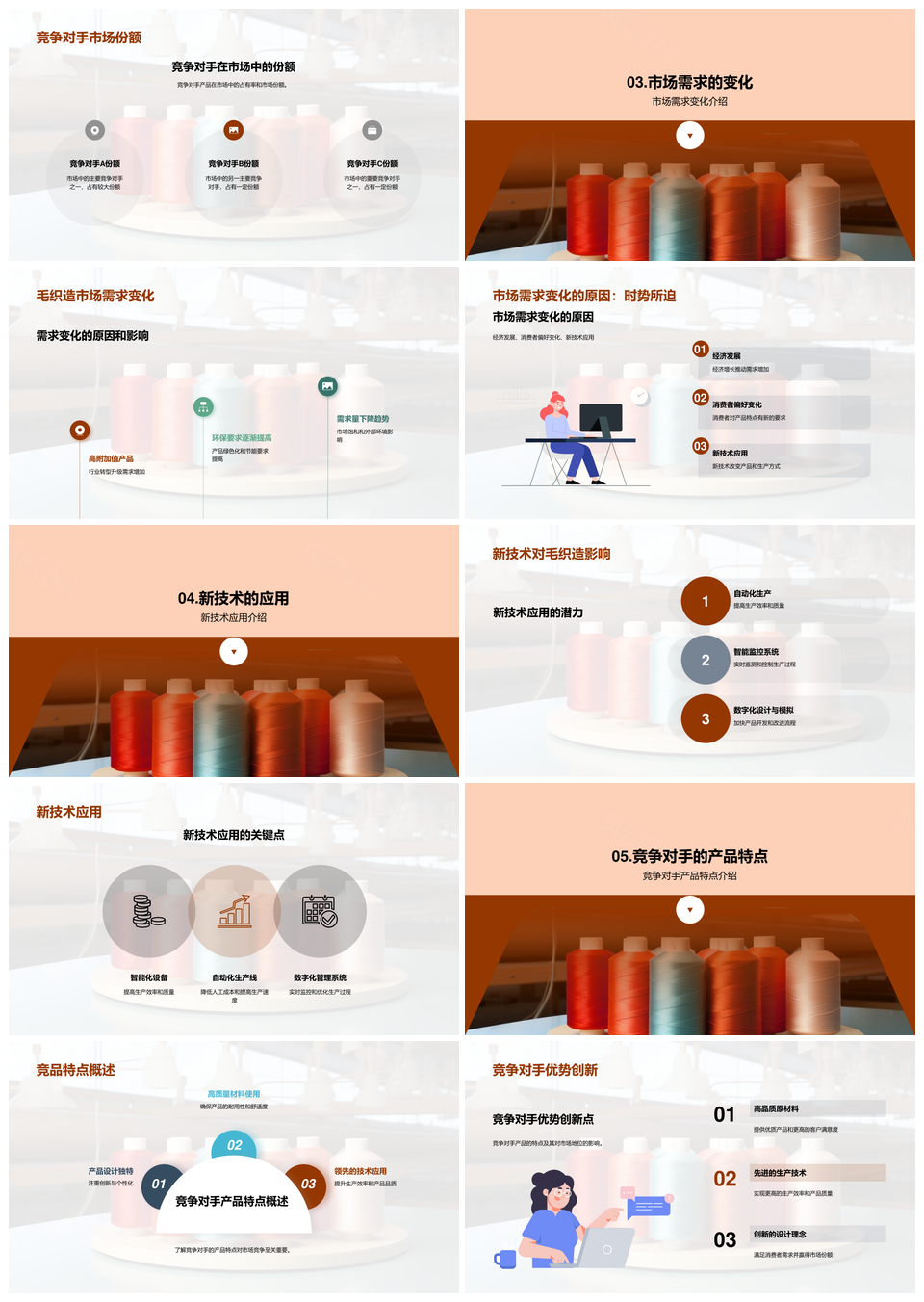 毛织造行业市场规模增长纺纱机新技术竞争分析PPT模板