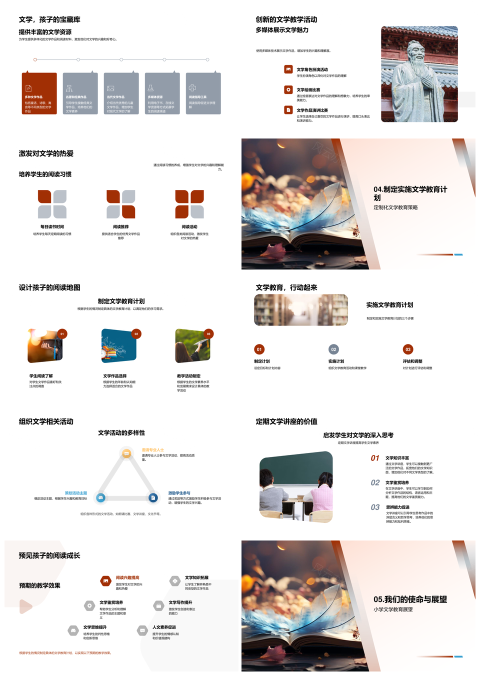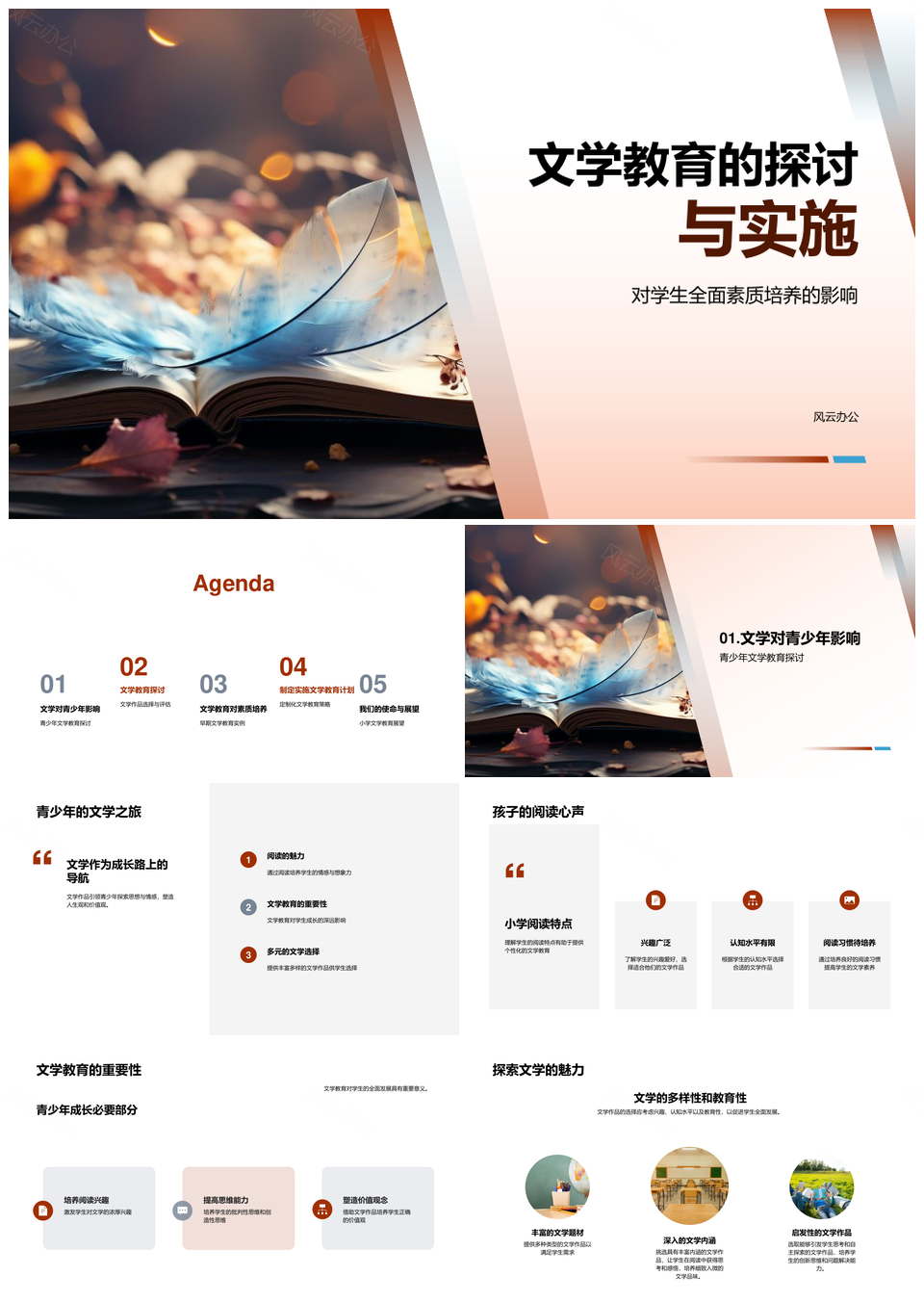 风云办公提供的小学文学教育素养培养与作品选择PPT模板,下载格式为pptx,一共33页,作品中文字及图均可以修改和编辑,图片更改请在作品中右键图片并更换,文字修改请直接点击文字进行修改。