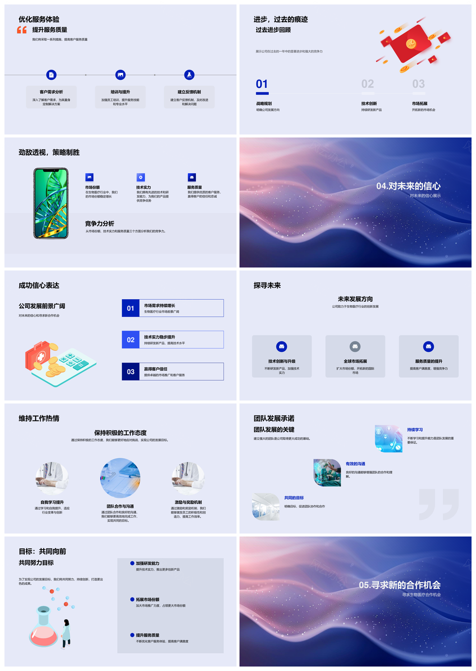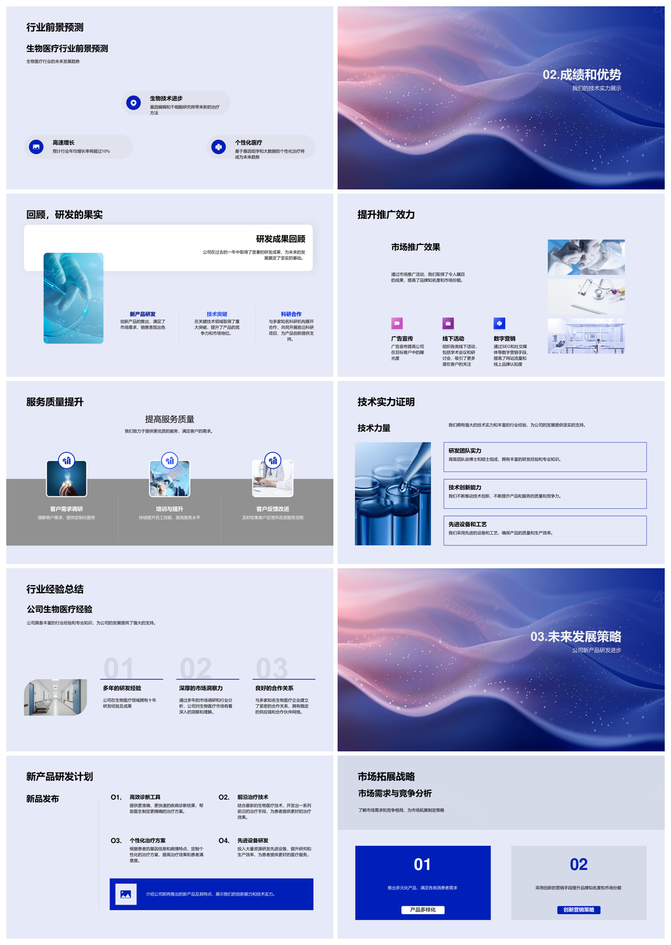 这是一张生物医疗研发成果技术实力市场推广业绩汇报PPT模板,包含生物医疗、研发成果、技术实力、市场推广、业绩汇报等主题内容,也可用作生物医疗研发成果技术实力市场推广、研发成果技术实力市场推广业绩汇报、生物医疗研发成果技术实力、研发成果技术实力市场推广、技术实力市场推广业绩汇报、生物医疗研发成果市场推广、生物医疗技术实力市场推广、研发成果市场推广业绩汇报、技术实力业绩汇报、生物医疗研发成果、生物医疗技术实力、研发成果技术实力、技术实力市场推广、市场推广业绩汇报、业绩汇报技术实力等PPT场景使用。 风云办公提供的生物医疗研发成果技术实力市场推广业绩汇报PPT模板,下载格式为pptx,一共33页,作品中文字及图均可以修改和编辑,图片更改请在作品中右键图片并更换,文字修改请直接点击文字进行修改。