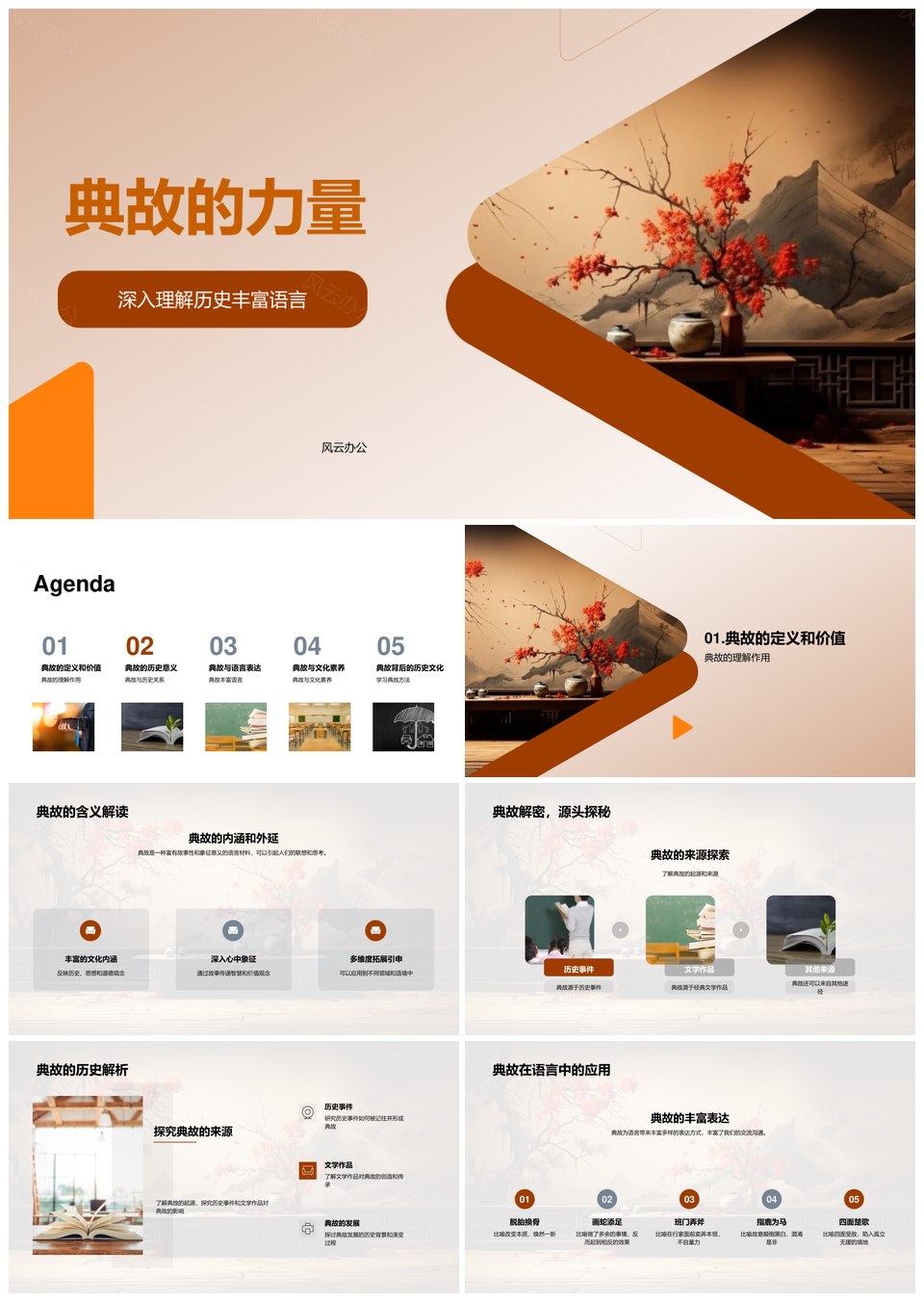 风云办公提供的中华典故传承历史文化语言教学PPT模板,下载格式为pptx,一共33页,作品中文字及图均可以修改和编辑,图片更改请在作品中右键图片并更换,文字修改请直接点击文字进行修改。