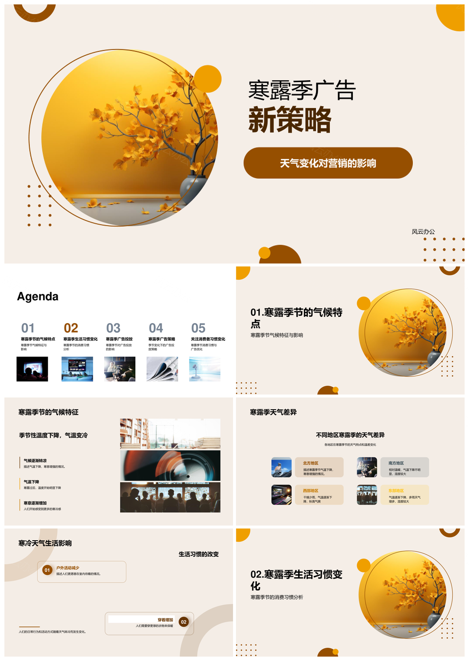 这是一张寒露季广告策略应对天气消费习惯室内心理需求PPT模板,包含寒露季、广告策略、应对、天气、消费习惯、室内、心理需求等主题内容,也可用作寒露季广告策略应对天气、广告策略应对天气消费习惯、应对天气消费习惯室内、天气消费习惯室内心理需求、寒露季广告策略应对、广告策略应对天气、应对天气消费习惯、天气消费习惯室内、消费习惯室内心理需求、寒露季广告策略、广告策略应对、应对天气、天气消费习惯、消费习惯室内、室内心理需求等PPT场景使用。 风云办公提供的寒露季广告策略应对天气消费习惯室内心理需求PPT模板,下载格式为pptx,一共23页,作品中文字及图均可以修改和编辑,图片更改请在作品中右键图片并更换,文字修改请直接点击文字进行修改。