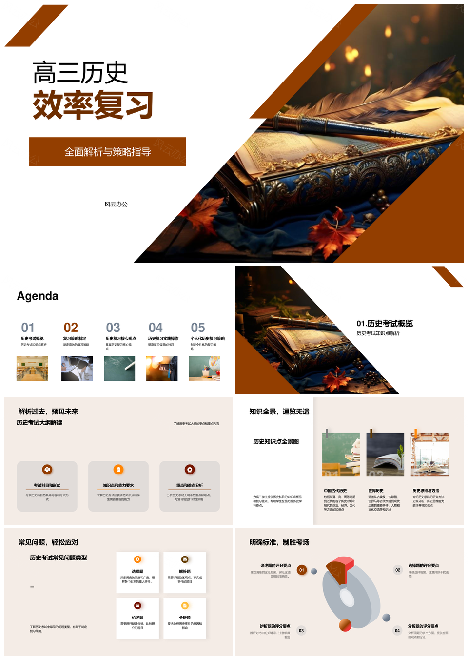 高三历史效率复习大纲知识点计划题型卷轴PPT模板推荐