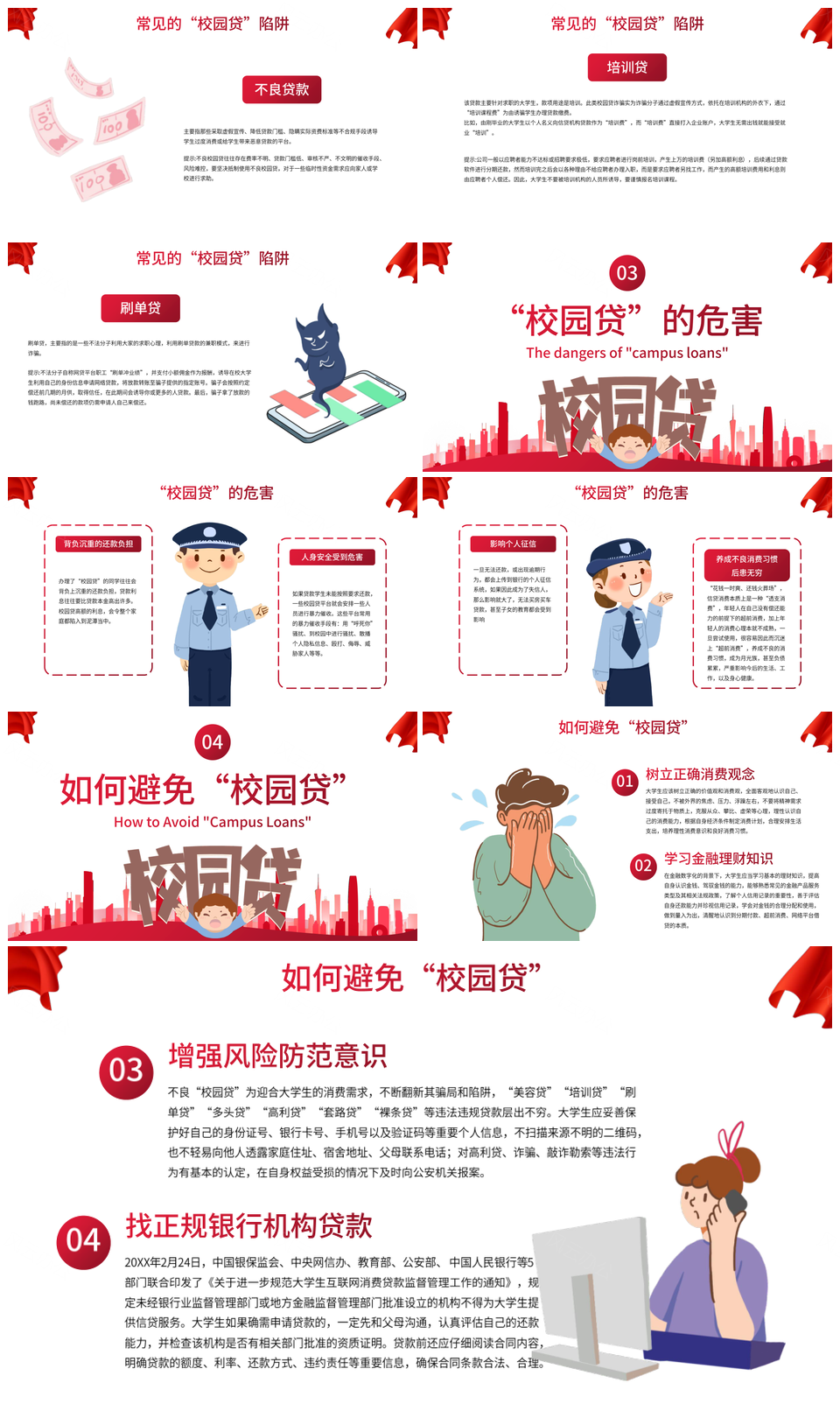 风云办公提供的卡通简约插画远离网贷主题教育PPT模板,下载格式为pptx,一共17页,作品中文字及图均可以修改和编辑,图片更改请在作品中右键图片并更换,文字修改请直接点击文字进行修改。