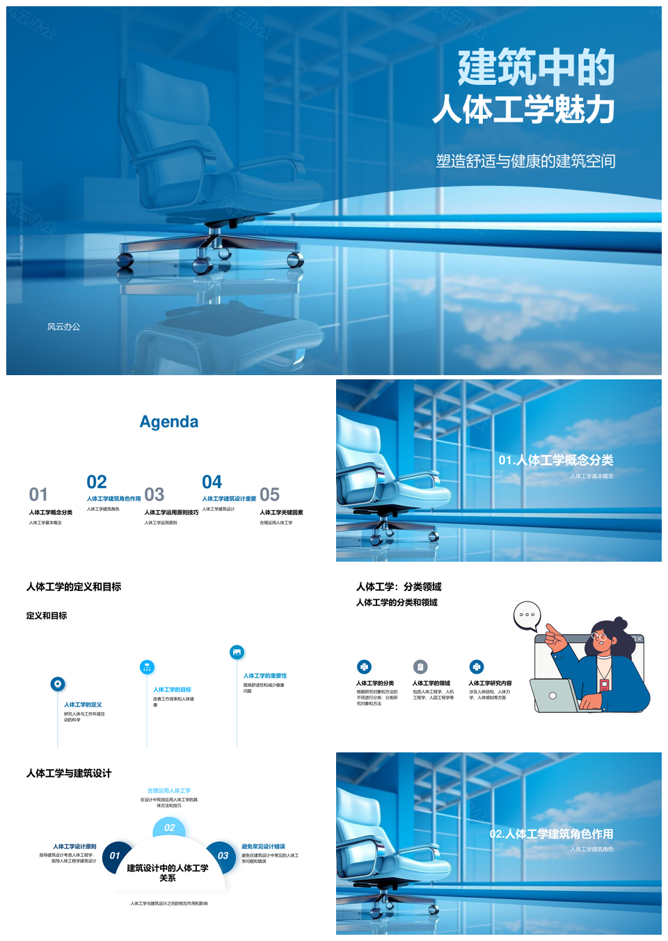 风云办公提供的建筑人体工学应用保障健康舒适设计PPT模板,下载格式为pptx,一共23页,作品中文字及图均可以修改和编辑,图片更改请在作品中右键图片并更换,文字修改请直接点击文字进行修改。