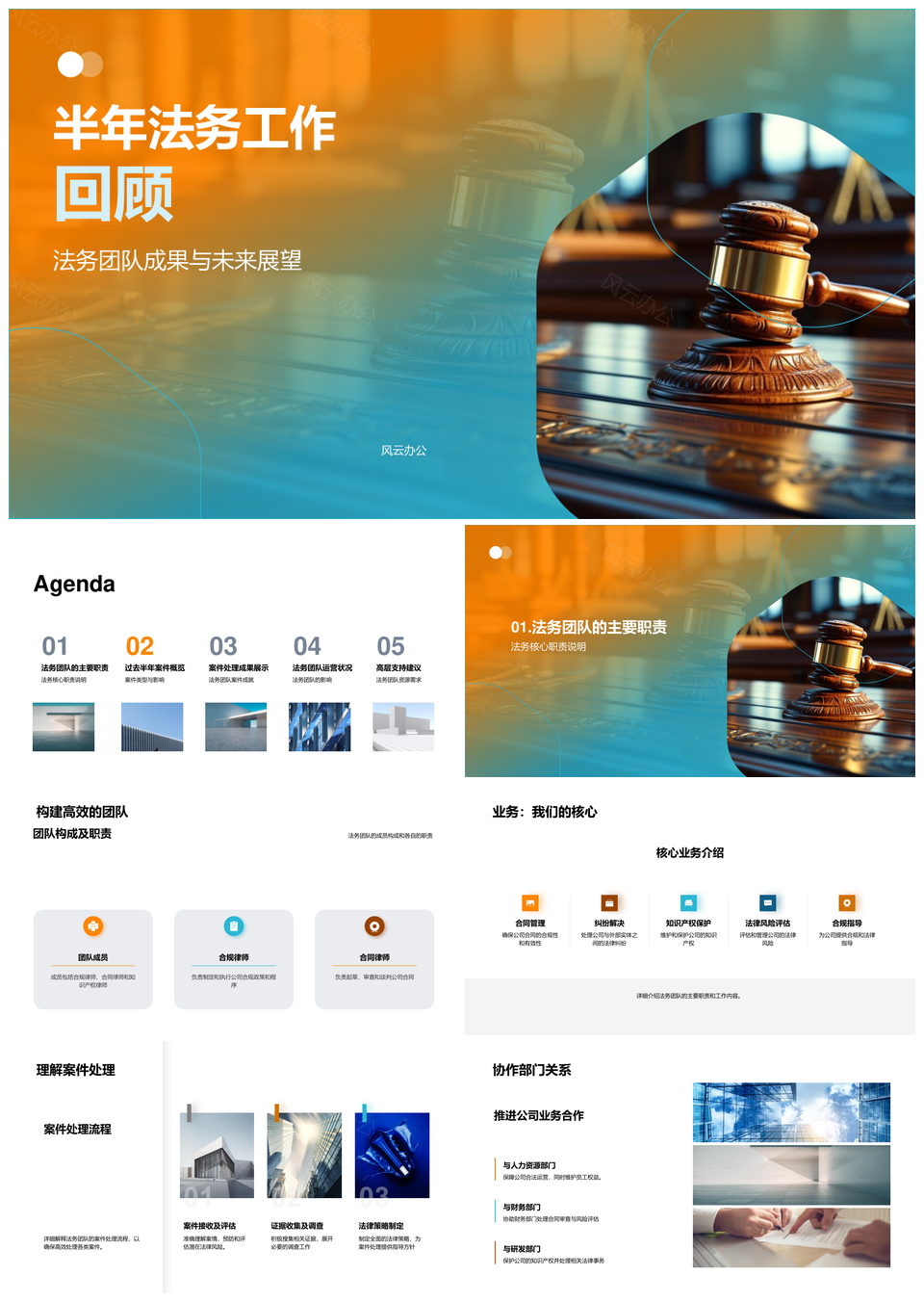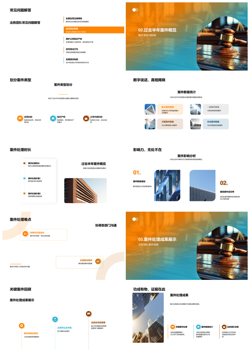 法务团队半年案件处理核心职责与风险回顾PPT模板推荐