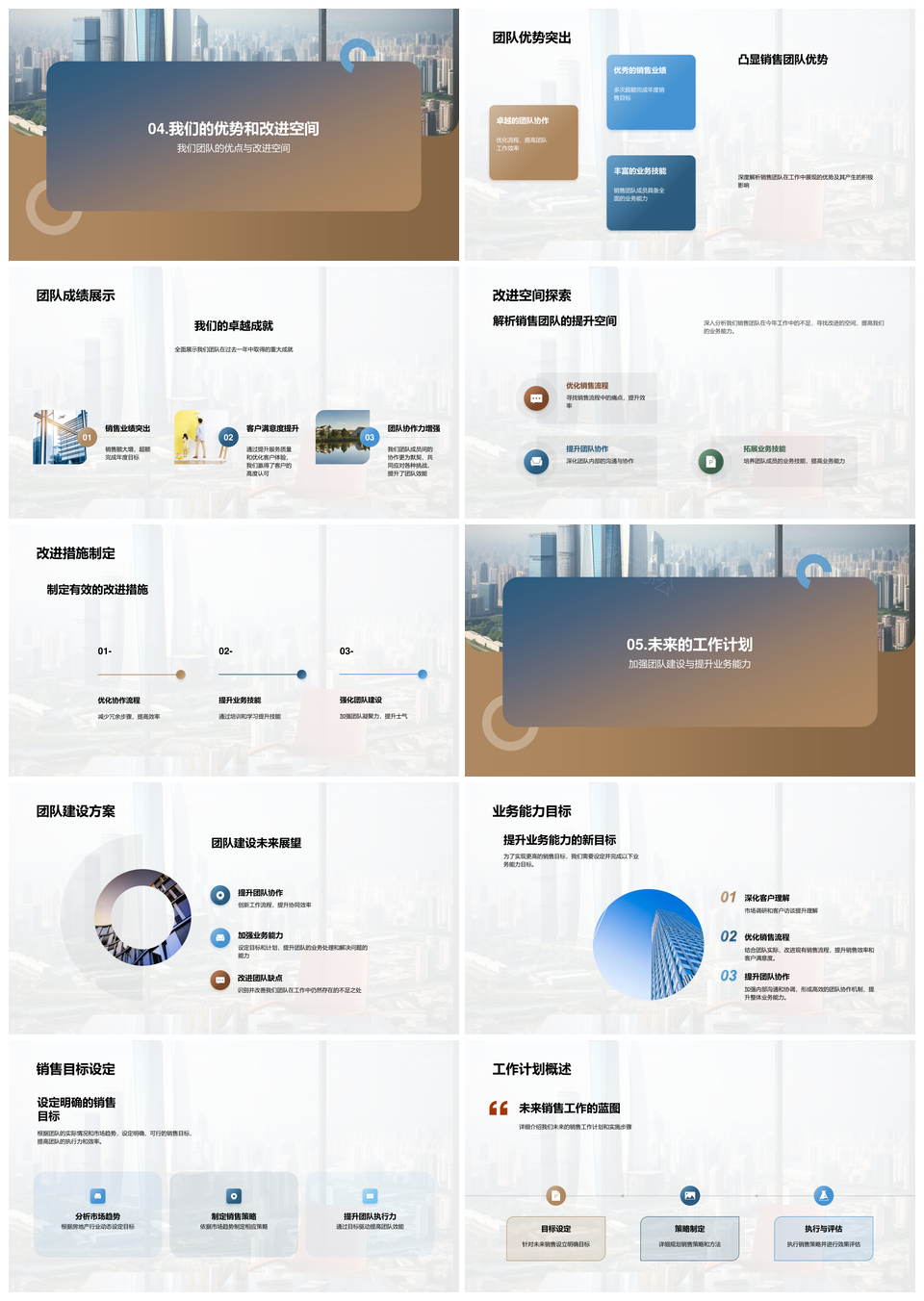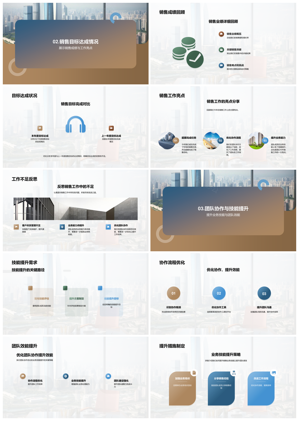 房地产共赢销售团队摩天大楼业绩回顾协作共享改进规划PPT模板