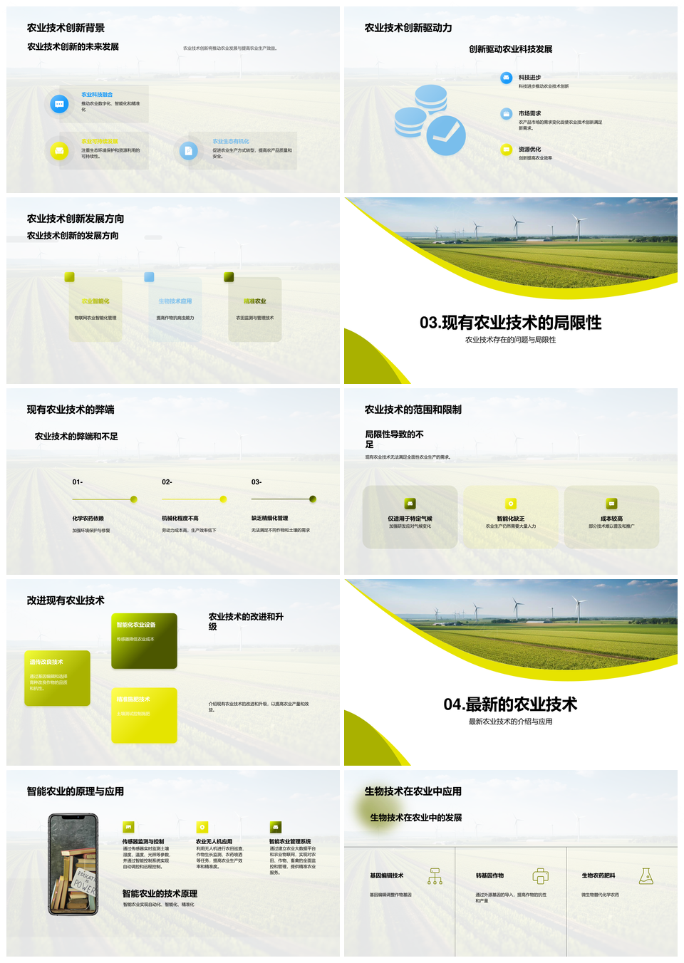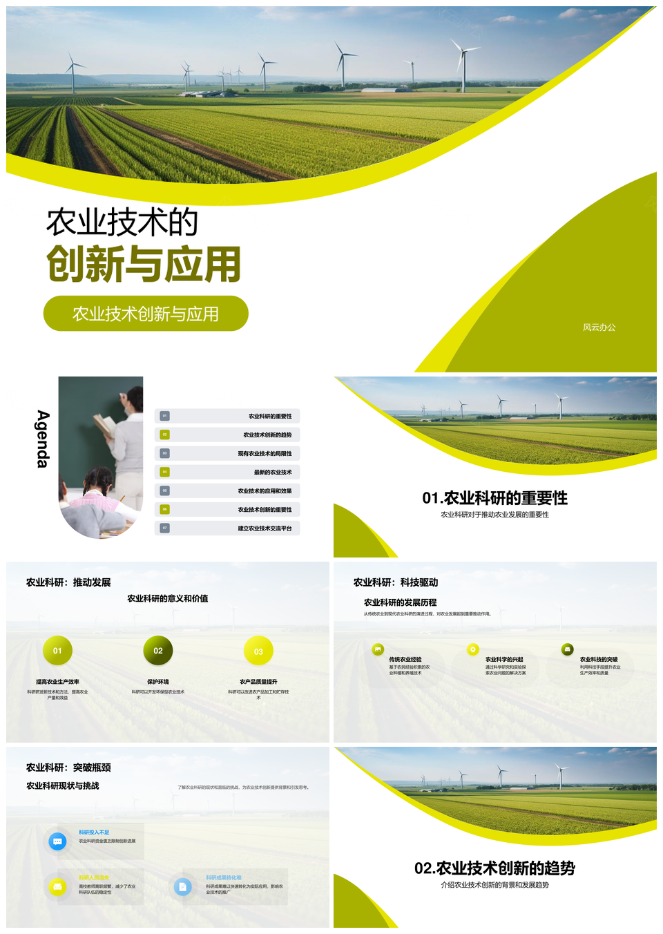 风云办公提供的农业技术创新发展与应用价值PPT模板,下载格式为pptx,一共33页,作品中文字及图均可以修改和编辑,图片更改请在作品中右键图片并更换,文字修改请直接点击文字进行修改。