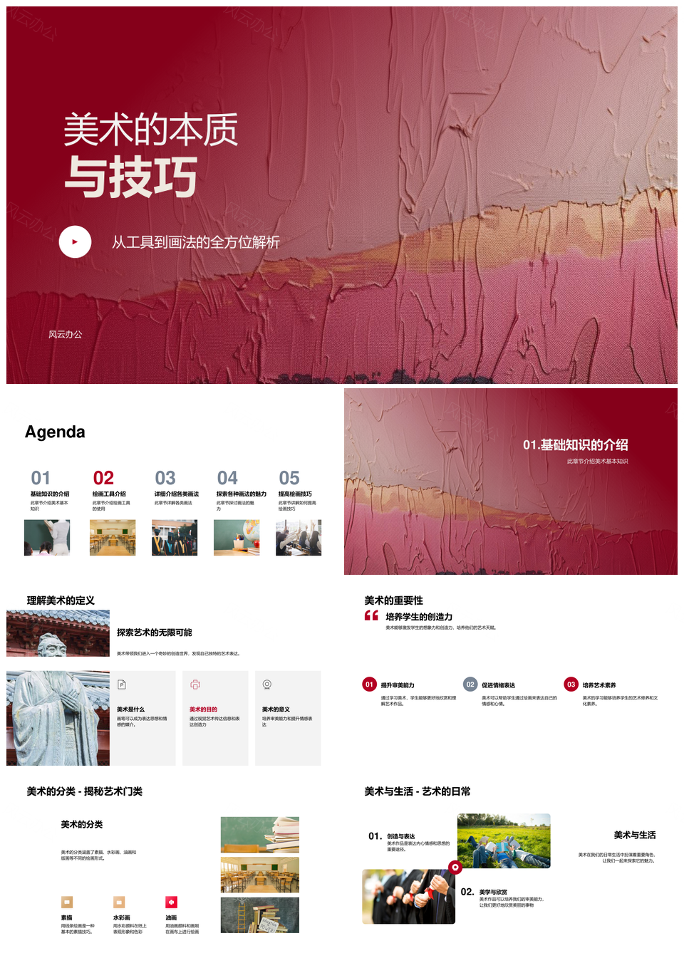 这是一张美术技法素描水彩油画版画工具纹理背景解析PPT模板,包含美术技法、素描、水彩、油画、版画、工具、纹理、背景、解析等主题内容,也可用作美术技法素描水彩、技法素描水彩油画、素描水彩油画版画、水彩油画版画工具、油画版画工具纹理、版画工具纹理背景、工具纹理背景解析、美术技法工具纹理、技法工具纹理背景、素描水彩工具纹理、水彩油画背景解析、版画纹理背景解析、美术技法背景解析、素描工具纹理解析、水彩版画背景工具等PPT场景使用。 风云办公提供的美术技法素描水彩油画版画工具纹理背景解析PPT模板,下载格式为pptx,一共28页,作品中文字及图均可以修改和编辑,图片更改请在作品中右键图片并更换,文字修改请直接点击文字进行修改。