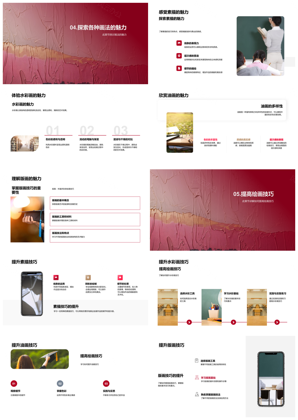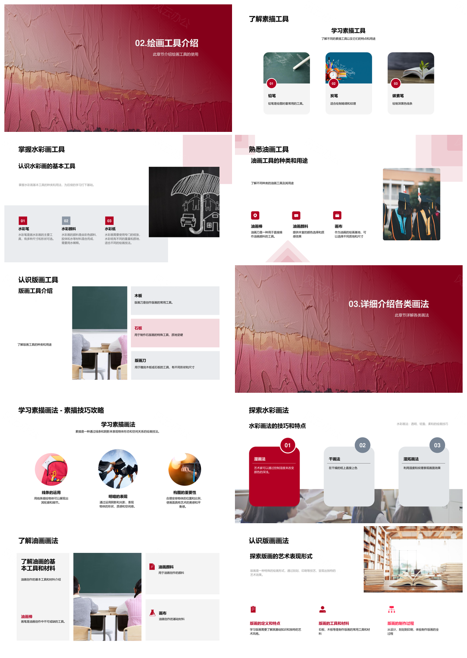 美术技法素描水彩油画版画工具纹理背景解析PPT模板推荐