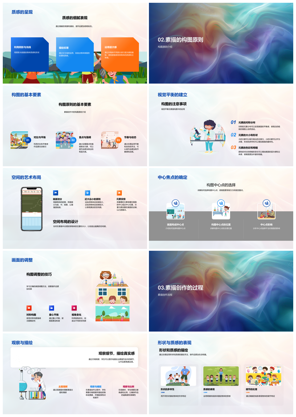 素描教学线条明暗色彩构图平衡空间形质技法PPT模板