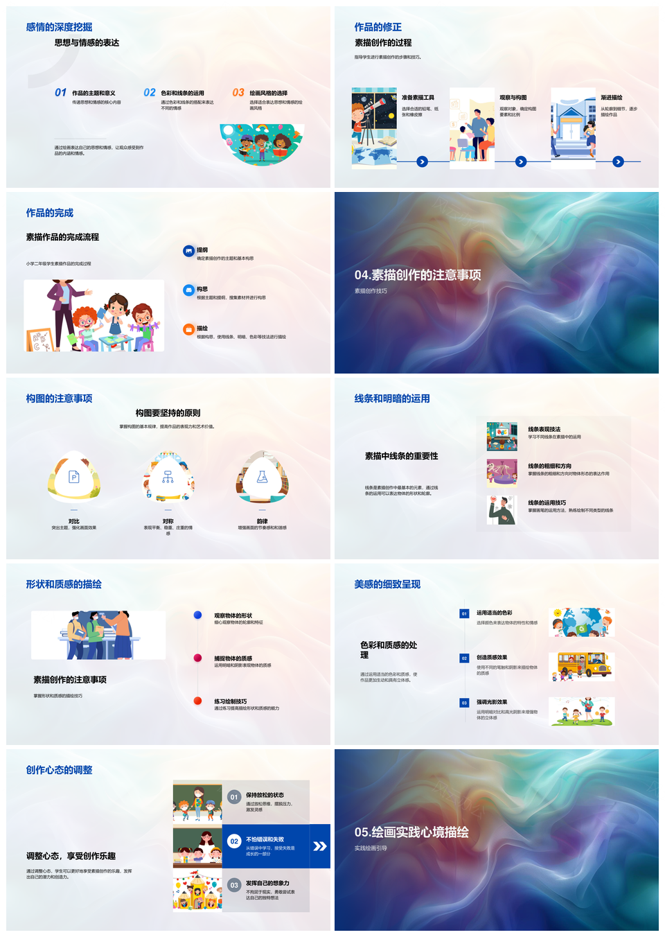 小学美术基础技法色彩构图光影线条教学PPT模板