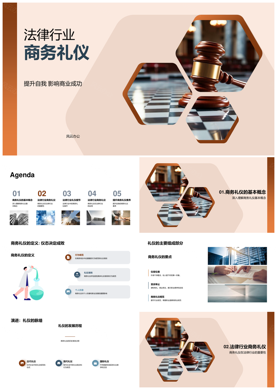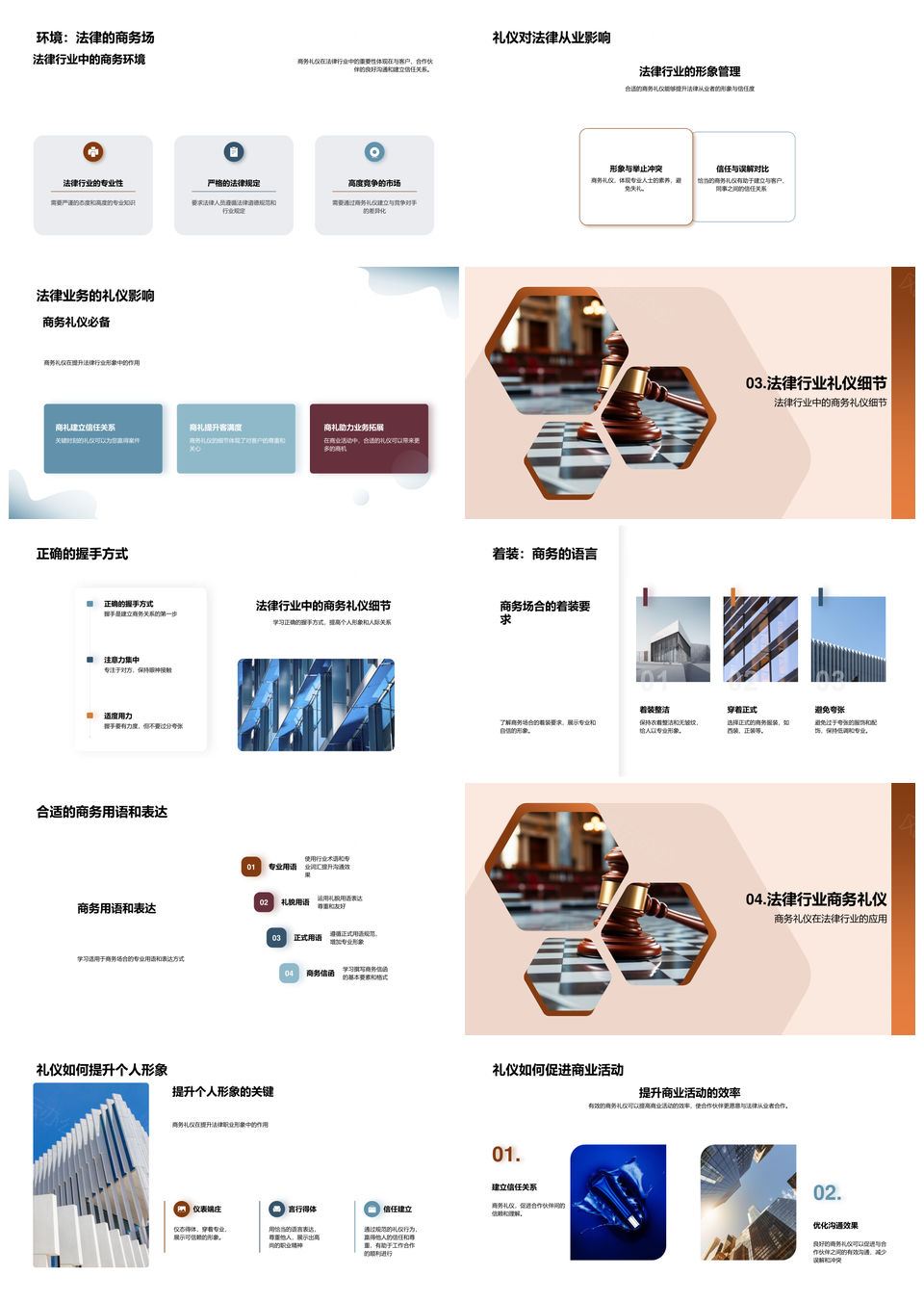 2025法律行业商务礼仪正确握手与法槌PPT模板推荐