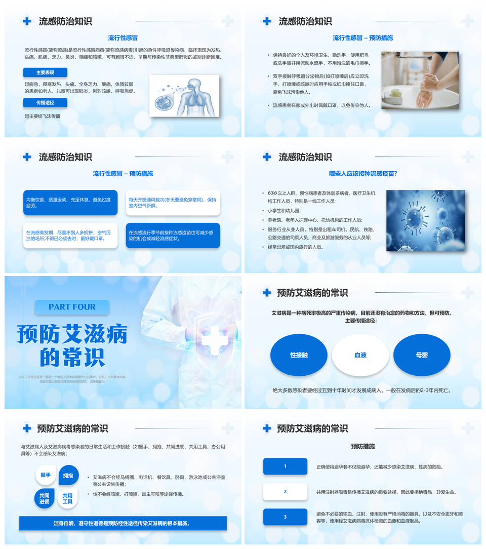 蓝色商务公共卫生健康知识宣传传染病预防手卫生创卫PPT模板推荐