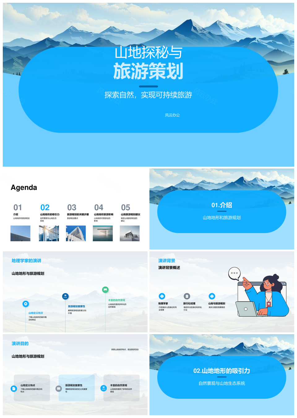 地理学家解析山地地形特点与旅社景观规划PPT模板推荐