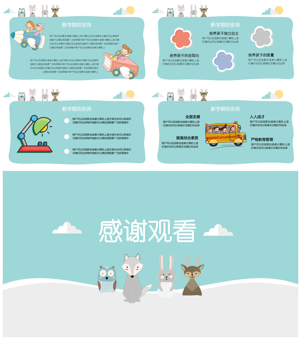 蓝色教育教学可爱卡通班会家长会小熊主题PPT模板