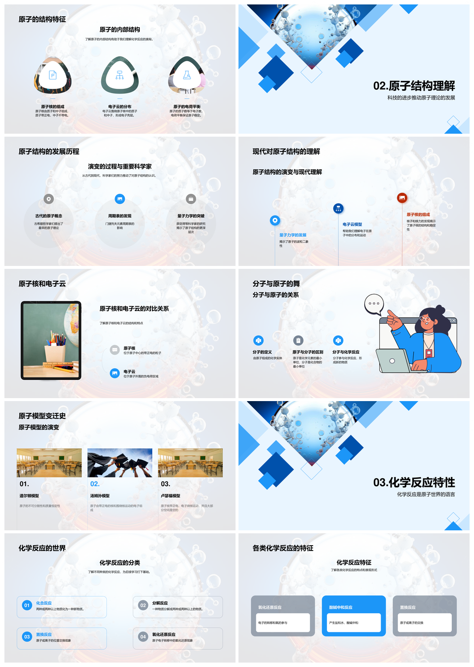 风云办公提供的原子结构化学反应规律探秘PPT模板,下载格式为pptx,一共33页,作品中文字及图均可以修改和编辑,图片更改请在作品中右键图片并更换,文字修改请直接点击文字进行修改。