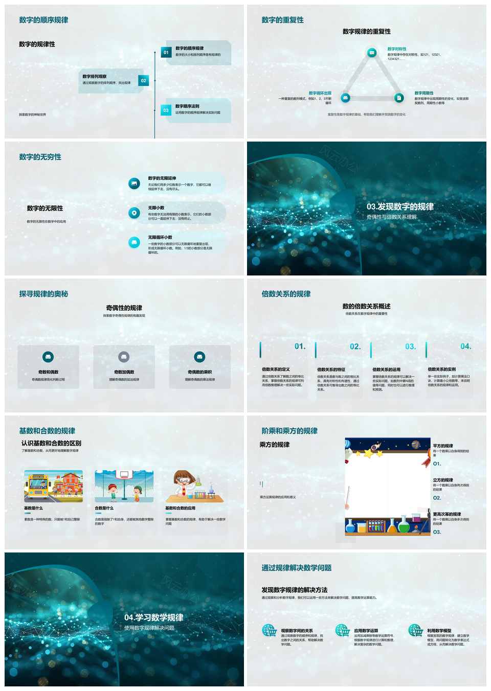 风云办公提供的数字属性奇偶倍数阶乘规律探秘PPT模板,下载格式为pptx,一共24页,作品中文字及图均可以修改和编辑,图片更改请在作品中右键图片并更换,文字修改请直接点击文字进行修改。