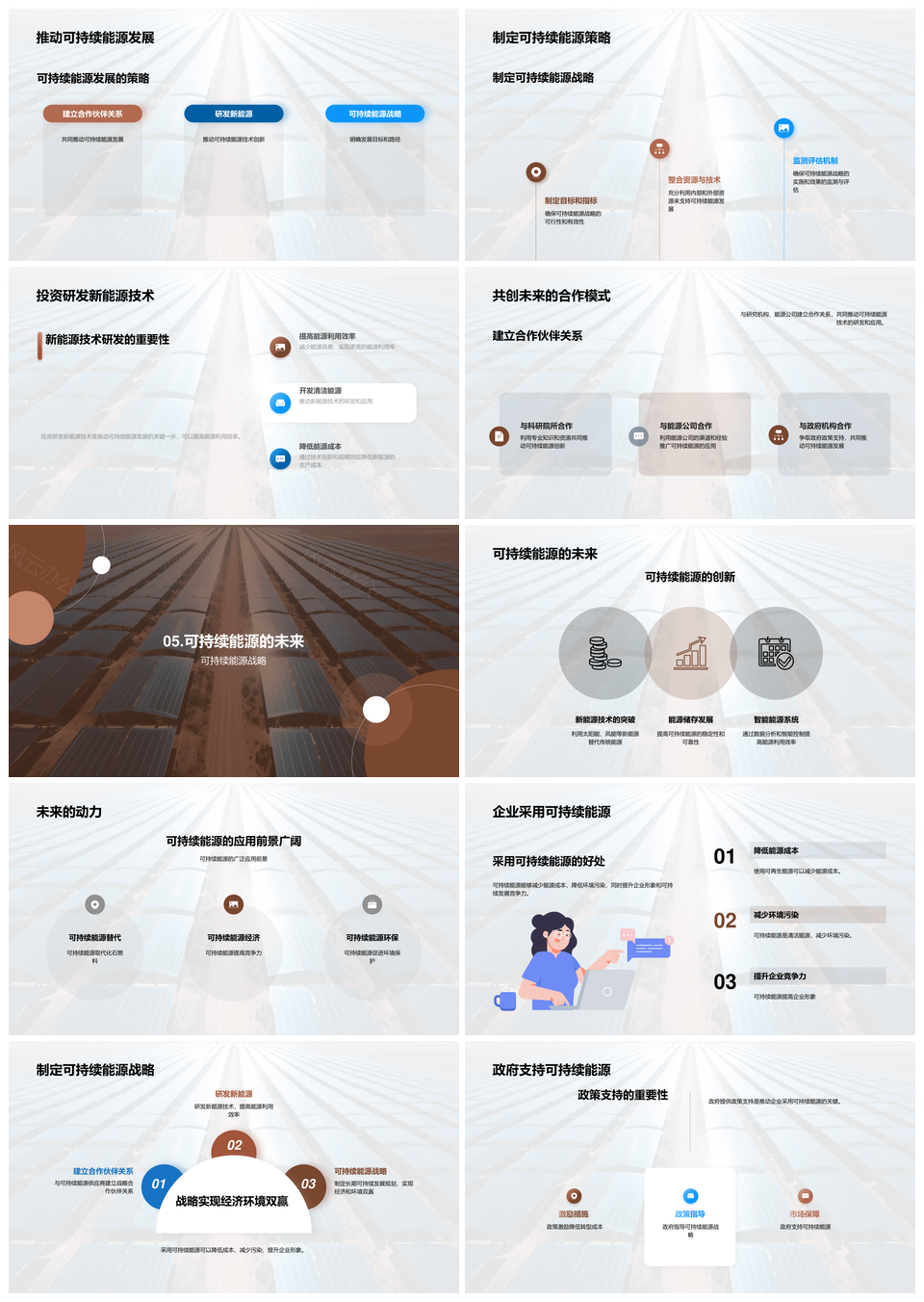 可持续能源政府推广策略环保挑战太阳能PPT模板