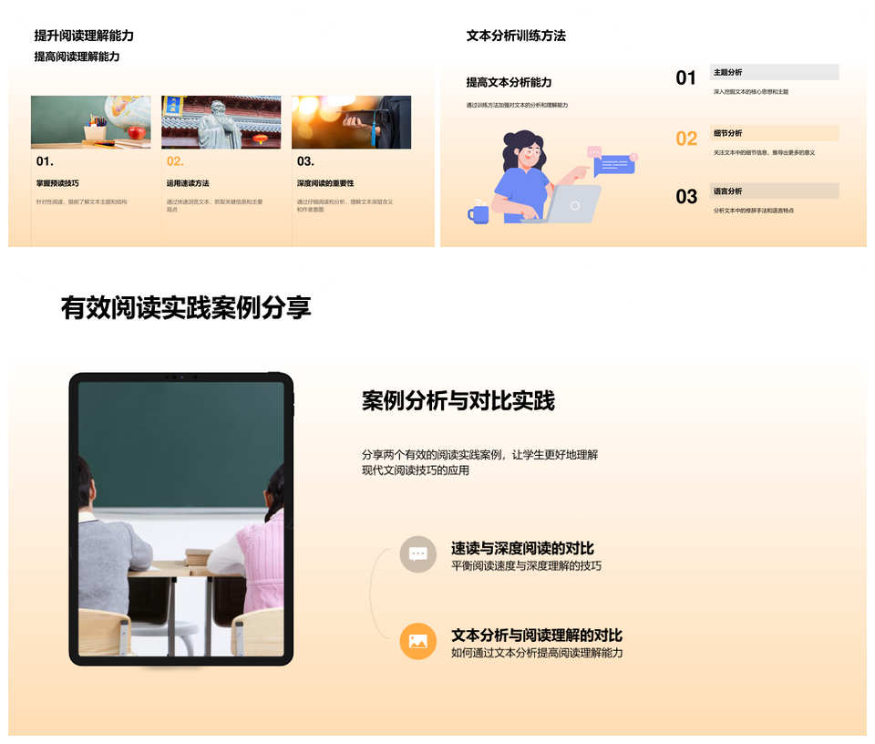 风云办公提供的现代文深度阅读技巧解析提升效率PPT模板,下载格式为pptx,一共31页,作品中文字及图均可以修改和编辑,图片更改请在作品中右键图片并更换,文字修改请直接点击文字进行修改。