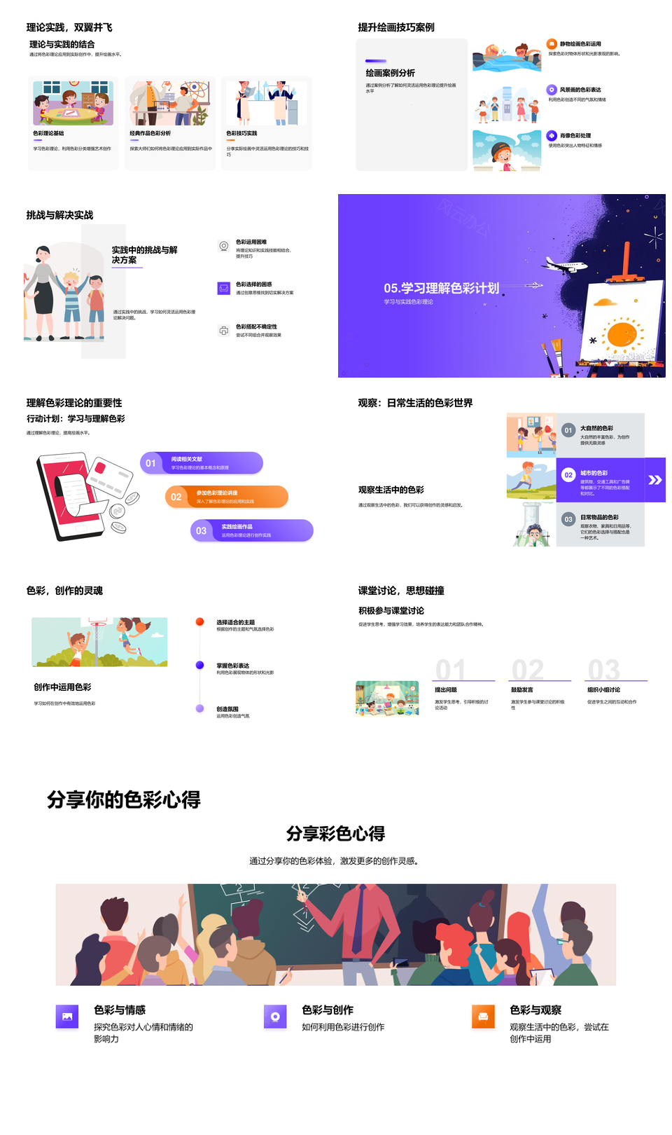 这是一张美术色彩教学理论与创作应用PPT模板,包含美术、色彩、教学、理论、创作、应用等主题内容,也可用作美术色彩教学理论、色彩教学理论创作、教学理论创作应用、美术色彩教学、色彩教学理论、教学理论创作、理论创作应用、美术教学理论、色彩理论创作、教学创作应用、美术色彩、色彩教学、教学理论、理论创作、创作应用等PPT场景使用。
