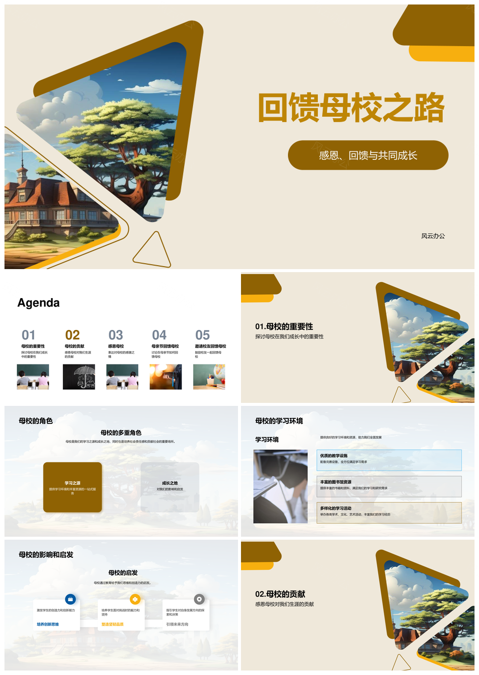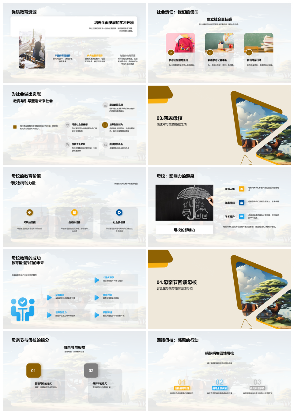 风云办公提供的校友母亲节感恩捐资助教建校PPT模板,下载格式为pptx,一共23页,作品中文字及图均可以修改和编辑,图片更改请在作品中右键图片并更换,文字修改请直接点击文字进行修改。