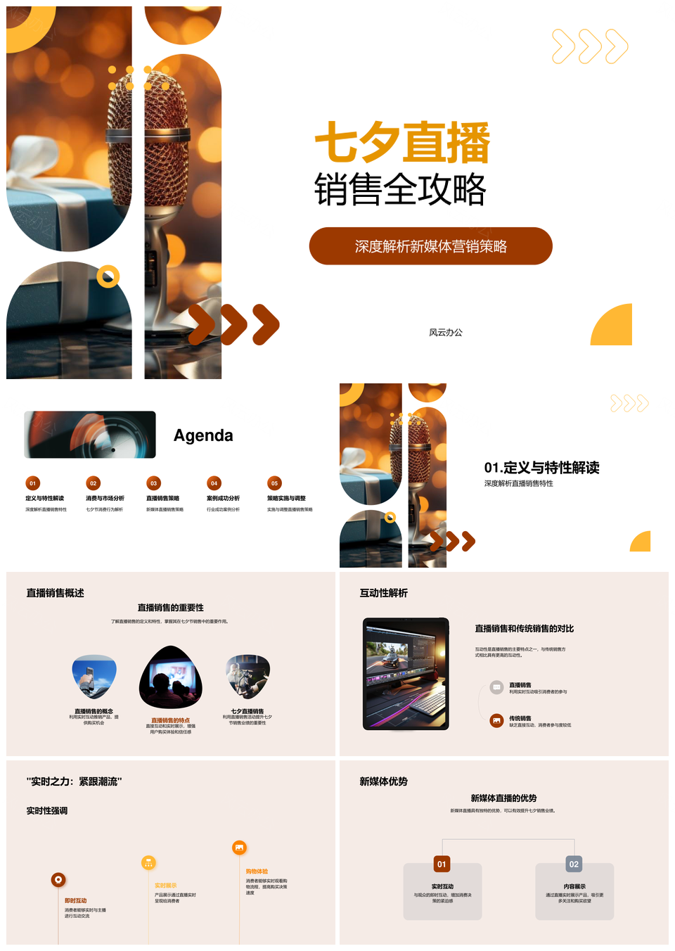 2025七夕新媒体直播销售策略数据转化情侣礼物麦克风PPT模板