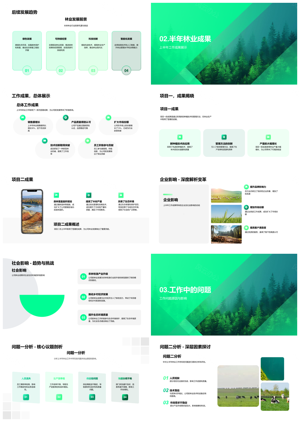 这是一张2025林业业务年中成果战略与下半年规划PPT模板,包含2025、林业、业务、年中、成果、战略、下半年、规划等主题内容,也可用作2025林业业务成果战略、林业业务年中成果战略、业务年中成果战略规划、年中成果战略下半年规划、2025林业年中成果、林业业务战略规划、业务成果下半年规划、下半年规划2025、林业年中成果、业务成果战略、年中战略规划、2025成果战略、林业下半年规划、业务下半年规划、成果战略规划等PPT场景使用。 风云办公提供的2025林业业务年中成果战略与下半年规划PPT模板,下载格式为pptx,一共33页,作品中文字及图均可以修改和编辑,图片更改请在作品中右键图片并更换,文字修改请直接点击文字进行修改。