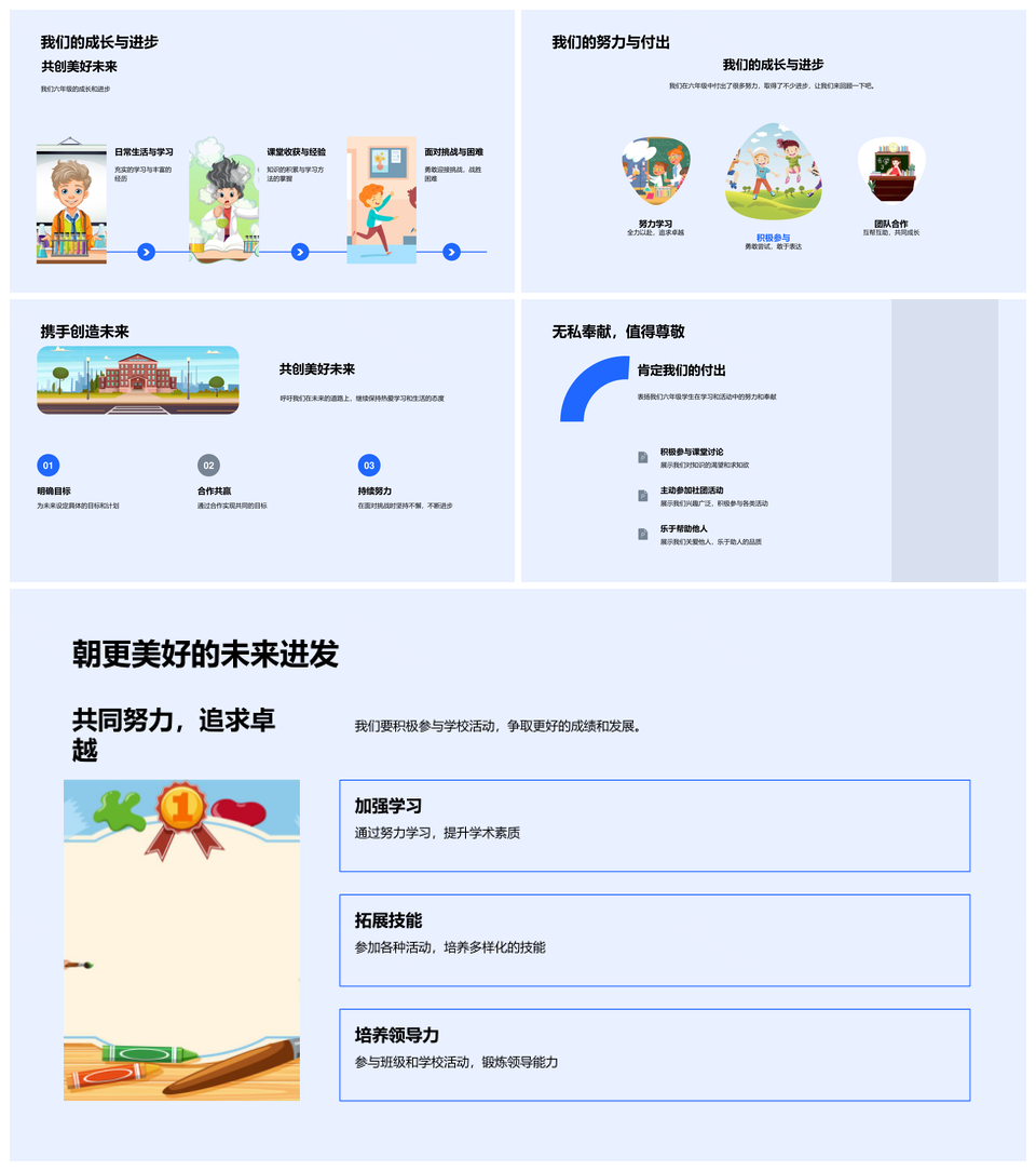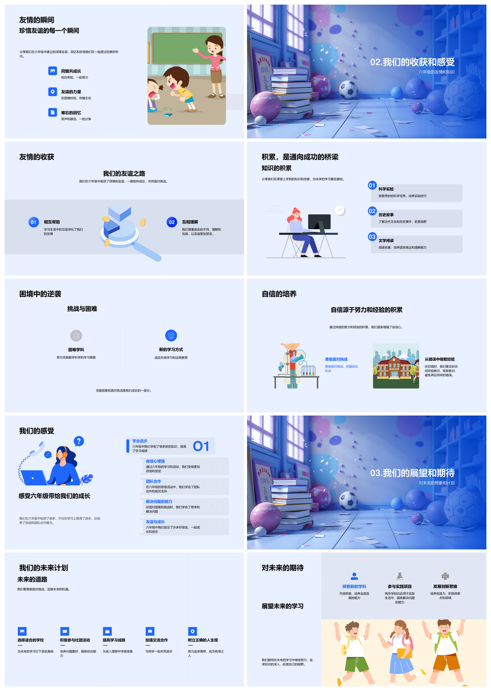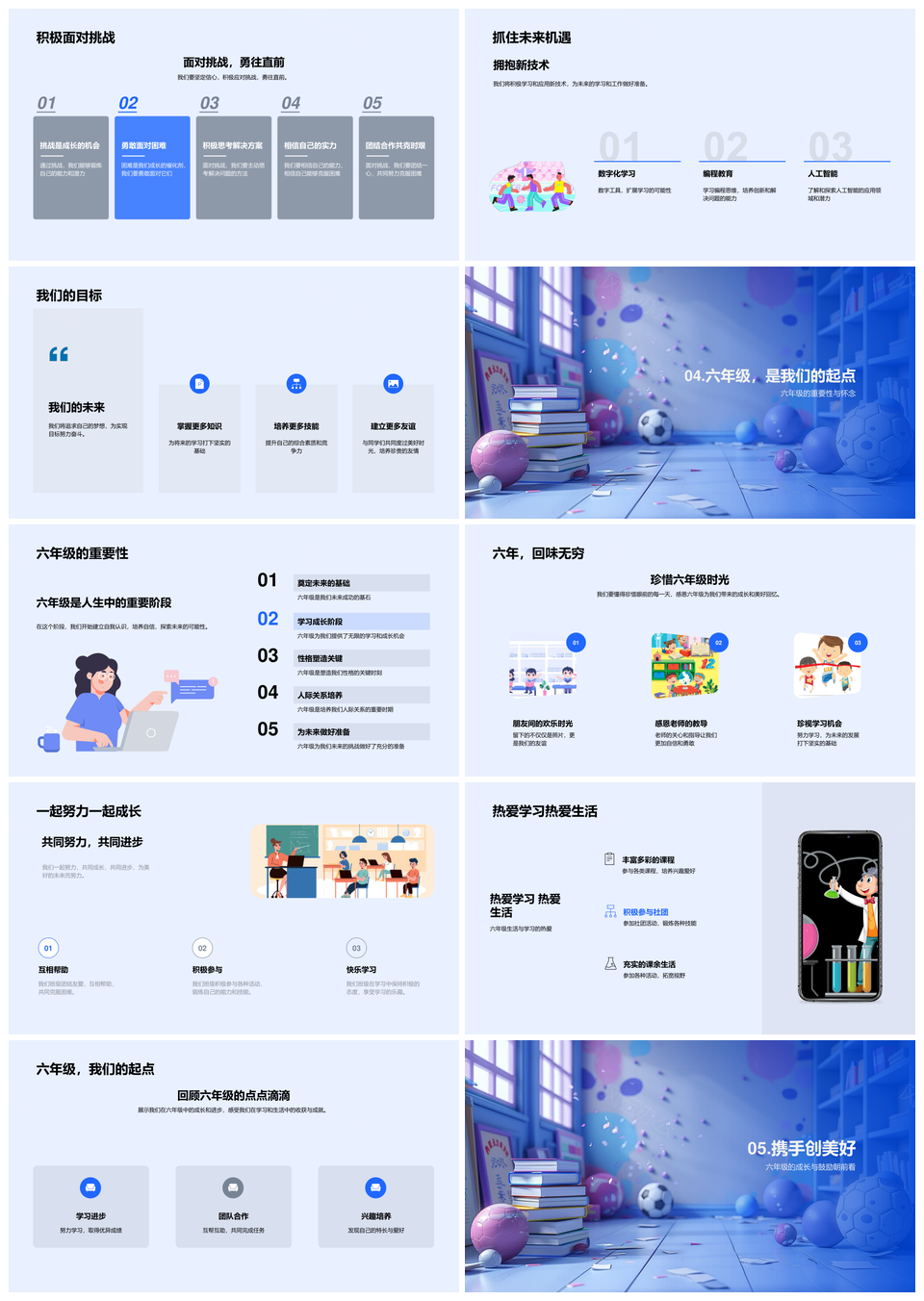 风云办公提供的六年级成长挑战收获友情自信同行PPT模板,下载格式为pptx,一共33页,作品中文字及图均可以修改和编辑,图片更改请在作品中右键图片并更换,文字修改请直接点击文字进行修改。