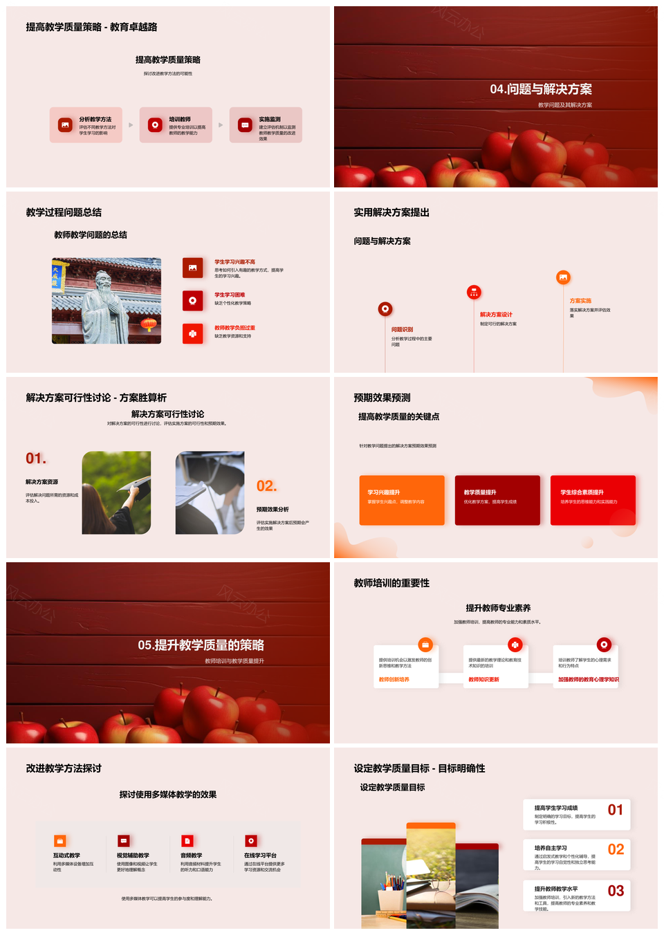 这款商务风PPT模板以正红与咖啡棕为主色调,传递专业严谨的视觉印象,适配企业提案、项目汇报等场景。模板采用模块化架构,分设数据图表、流程展示、案例对比等页面,层次清晰便于逻辑延展。图标与背景采用低饱和度撞色处理,避免视觉干扰,核心信息一目了然。所有元素支持独立编辑,可快速调整图文比例,替换企业VI色系。内置智能表格与时间轴组件,满足深度数据可视化需求。全局版式保留充足留白,兼顾严谨商务属性与高效修改诉求。