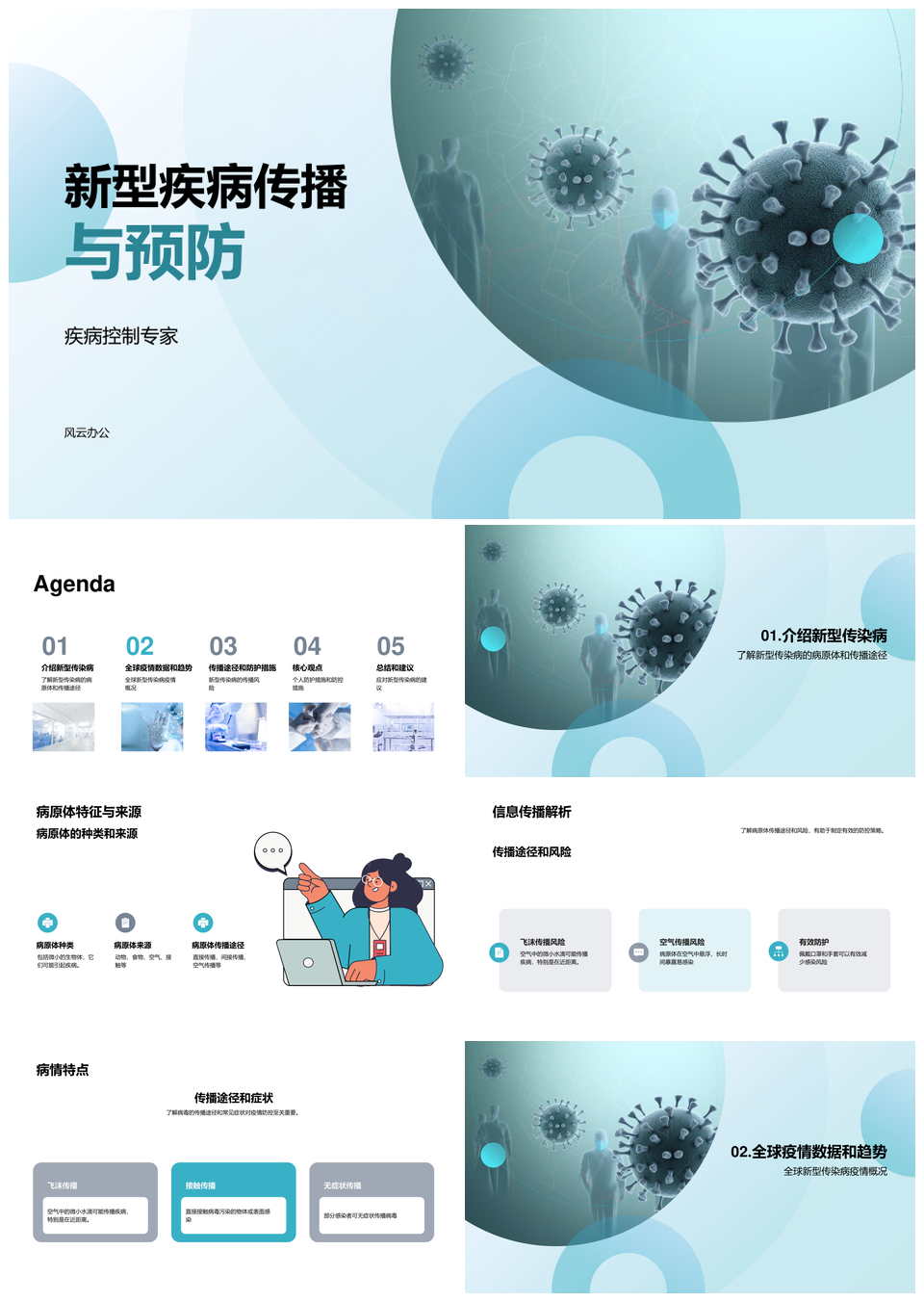 风云办公提供的新型病毒传播途径与医护防控措施PPT模板,下载格式为pptx,一共23页,作品中文字及图均可以修改和编辑,图片更改请在作品中右键图片并更换,文字修改请直接点击文字进行修改。
