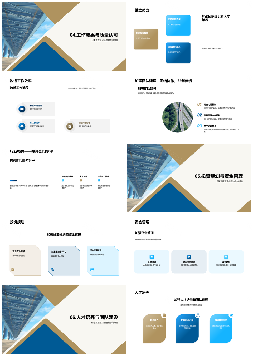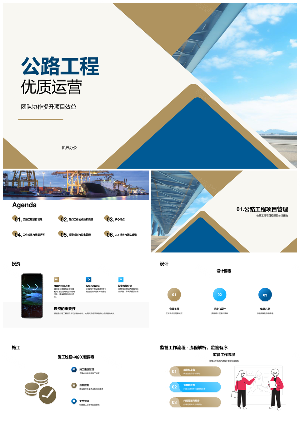 这是一张公路工程全流程管理理论与实践效益总结PPT模板,包含公路工程、全流程管理、理论、实践、效益、总结等主题内容,也可用作公路工程全流程管理理论与实践、公路工程全流程管理理论效益、公路工程全流程管理理论总结、全流程管理理论与实践效益、全流程管理理论实践效益总结、管理理论与实践效益总结、公路工程全流程实践效益、公路工程全流程管理效益总结、公路工程管理理论与实践效益、全流程管理实践效益总结、公路工程实践效益总结、公路工程管理理论总结、全流程效益总结、管理理论实践效益、实践效益总结等PPT场景使用。 风云办公提供的公路工程全流程管理理论与实践效益总结PPT模板,下载格式为pptx,一共29页,作品中文字及图均可以修改和编辑,图片更改请在作品中右键图片并更换,文字修改请直接点击文字进行修改。