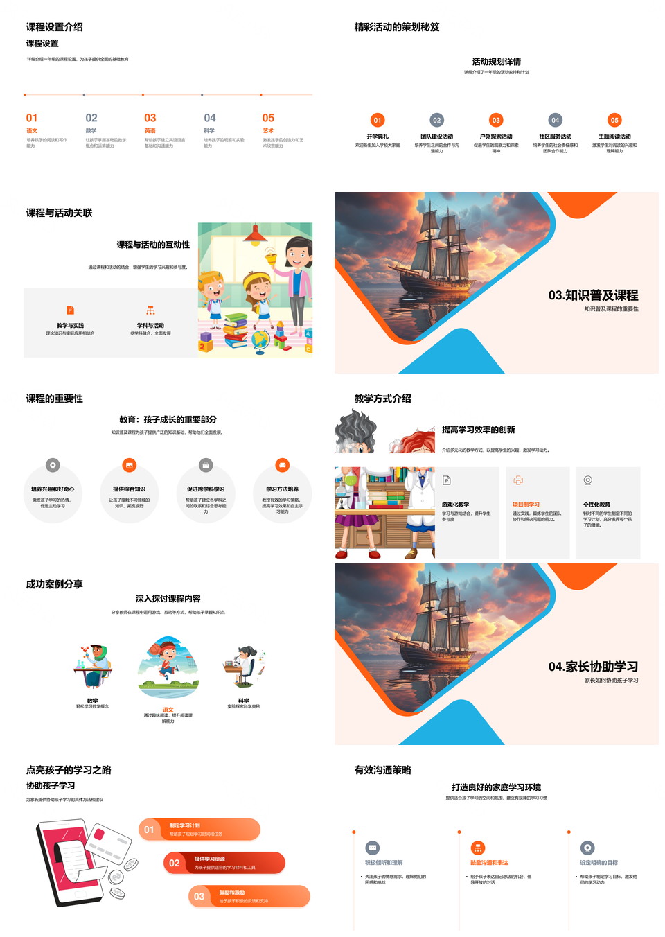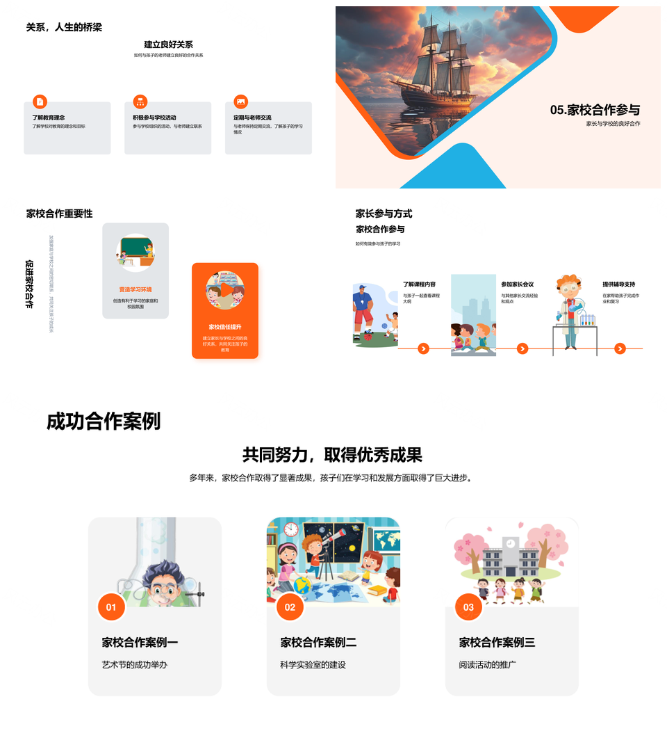 风云办公提供的一年级成长启航家校共育课程扬帆PPT模板,下载格式为pptx,一共23页,作品中文字及图均可以修改和编辑,图片更改请在作品中右键图片并更换,文字修改请直接点击文字进行修改。