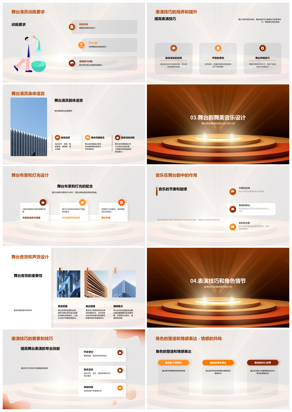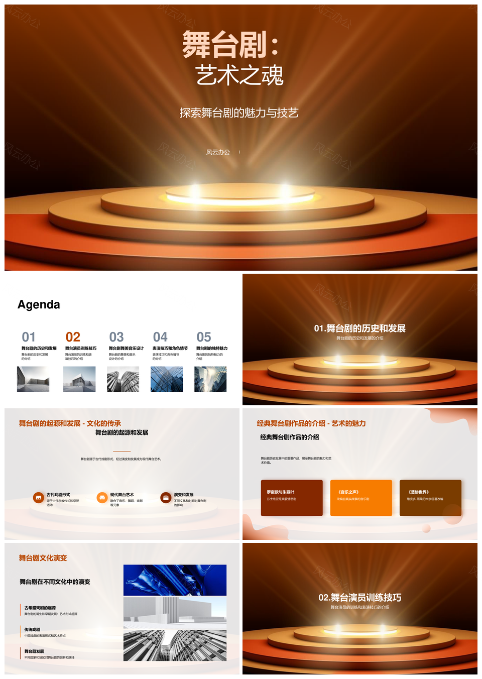 风云办公提供的舞台剧艺术源流演变与演员技艺传承PPT模板,下载格式为pptx,一共23页,作品中文字及图均可以修改和编辑,图片更改请在作品中右键图片并更换,文字修改请直接点击文字进行修改。
