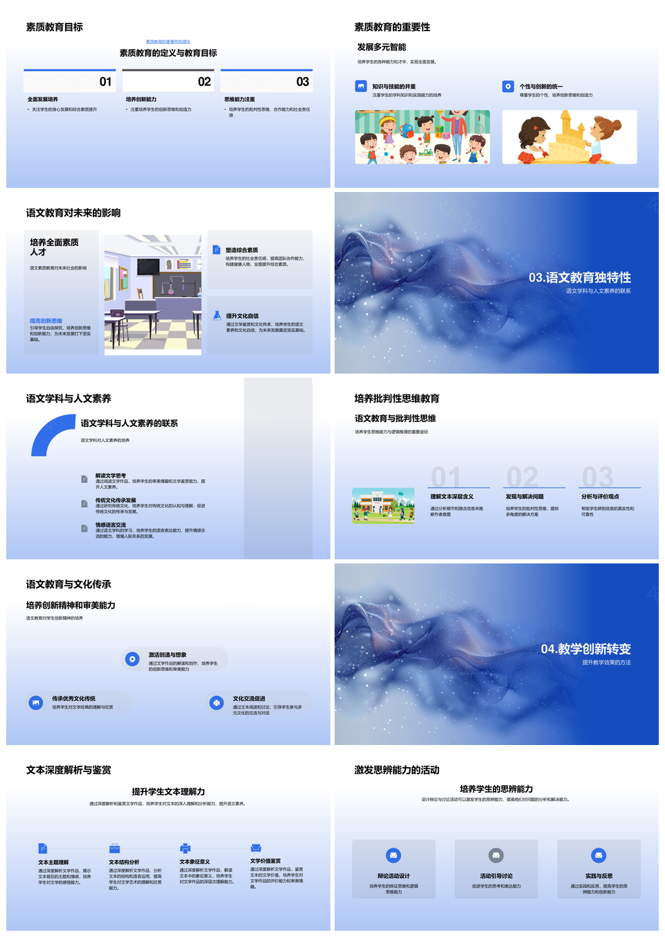 语文素质教育改革应试转向全面个性创新PPT模板推荐