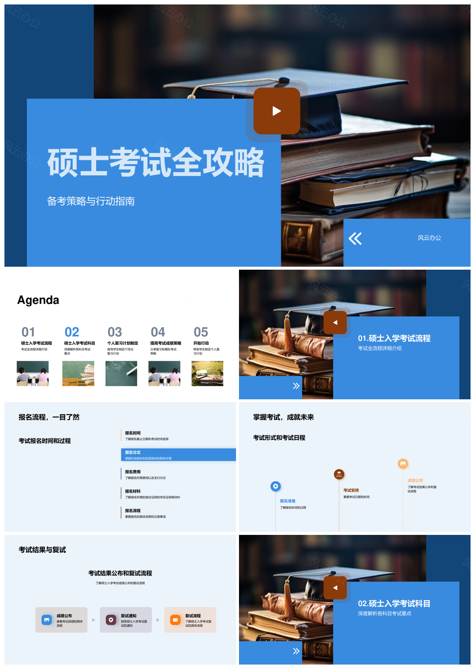 风云办公提供的硕士考试备考策略报名复试政治全指南PPT模板,下载格式为pptx,一共24页,作品中文字及图均可以修改和编辑,图片更改请在作品中右键图片并更换,文字修改请直接点击文字进行修改。
