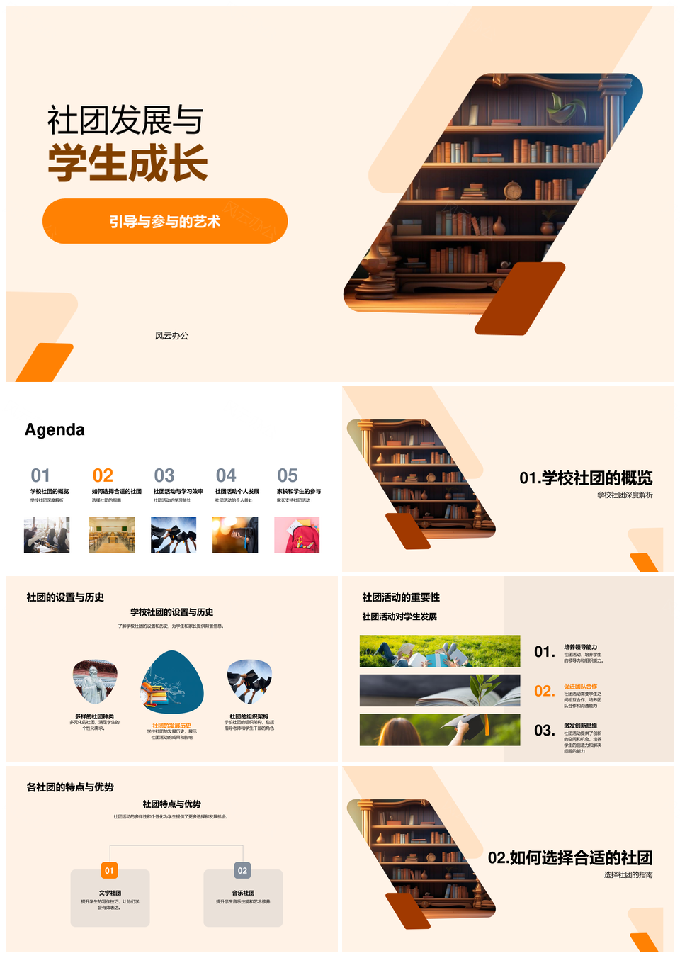 风云办公提供的社团发展助力学生多元成长PPT模板,下载格式为pptx,一共23页,作品中文字及图均可以修改和编辑,图片更改请在作品中右键图片并更换,文字修改请直接点击文字进行修改。