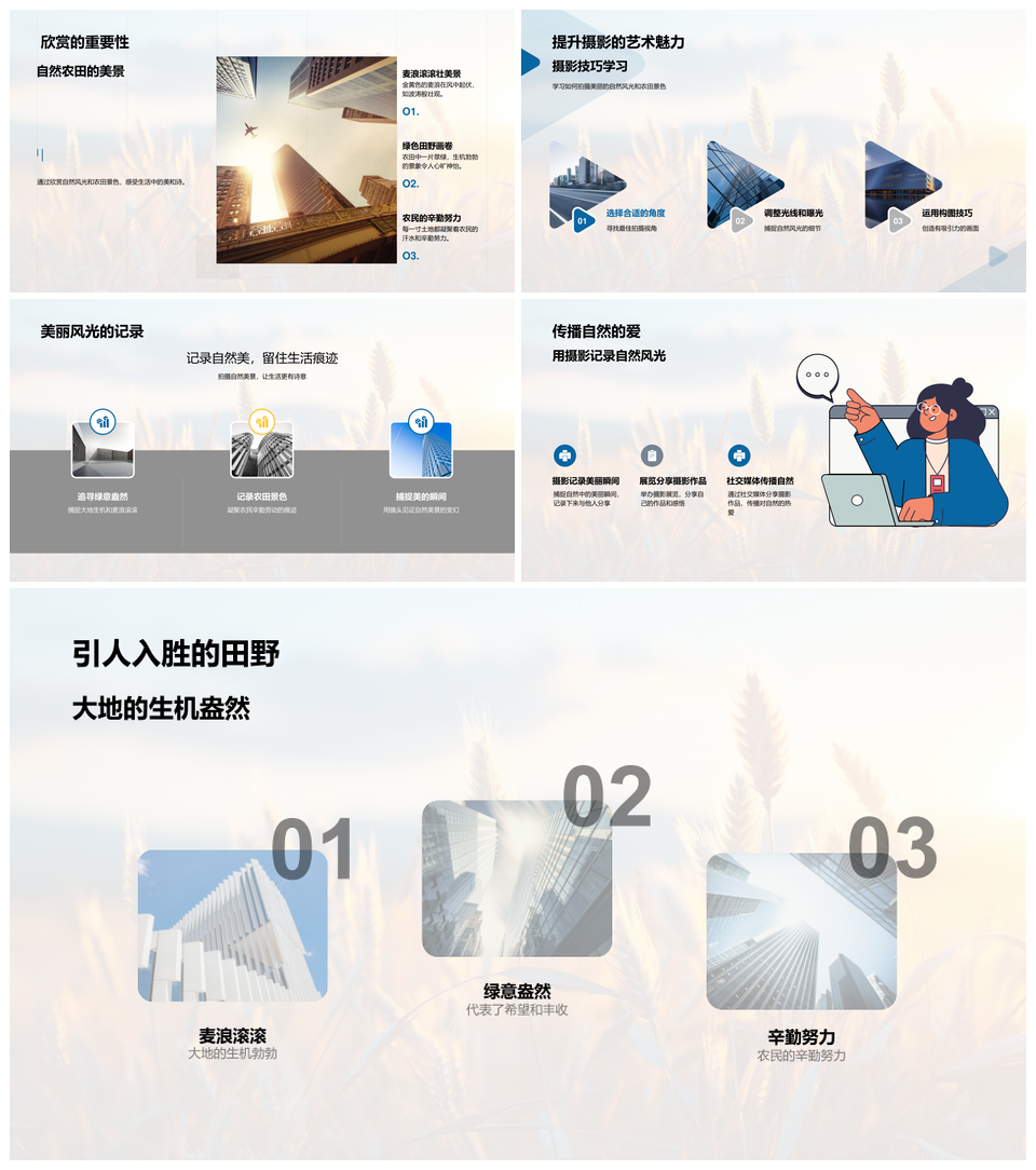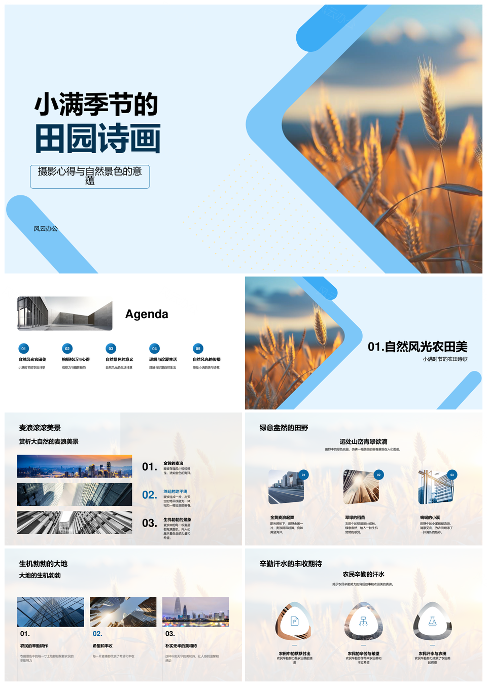 风云办公提供的小满麦浪绿意盎然田园诗画PPT模板,下载格式为pptx,一共33页,作品中文字及图均可以修改和编辑,图片更改请在作品中右键图片并更换,文字修改请直接点击文字进行修改。