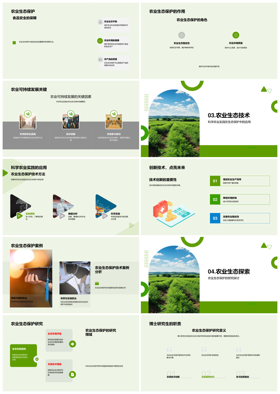 这是一张绿色农业绿色农田生态保障PPT模板,包含绿色农业、绿色农田、生态保障等主题内容,也可用作绿色农业绿色农田、绿色农业生态保障、绿色农田生态保障、绿色农业生态、绿色农业农田、绿色农田生态、农业生态保障、农田生态保障、绿色生态保障、绿色农业、绿色农田、农业生态、农田生态、生态保障、绿色生态等PPT场景使用。 风云办公提供的绿色农业绿色农田生态保障PPT模板,下载格式为pptx,一共23页,作品中文字及图均可以修改和编辑,图片更改请在作品中右键图片并更换,文字修改请直接点击文字进行修改。