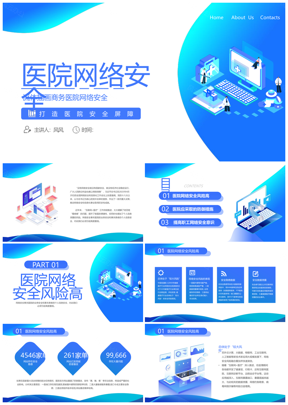2025医院网络安全商务蓝渐变培训插画PPT模板推荐
