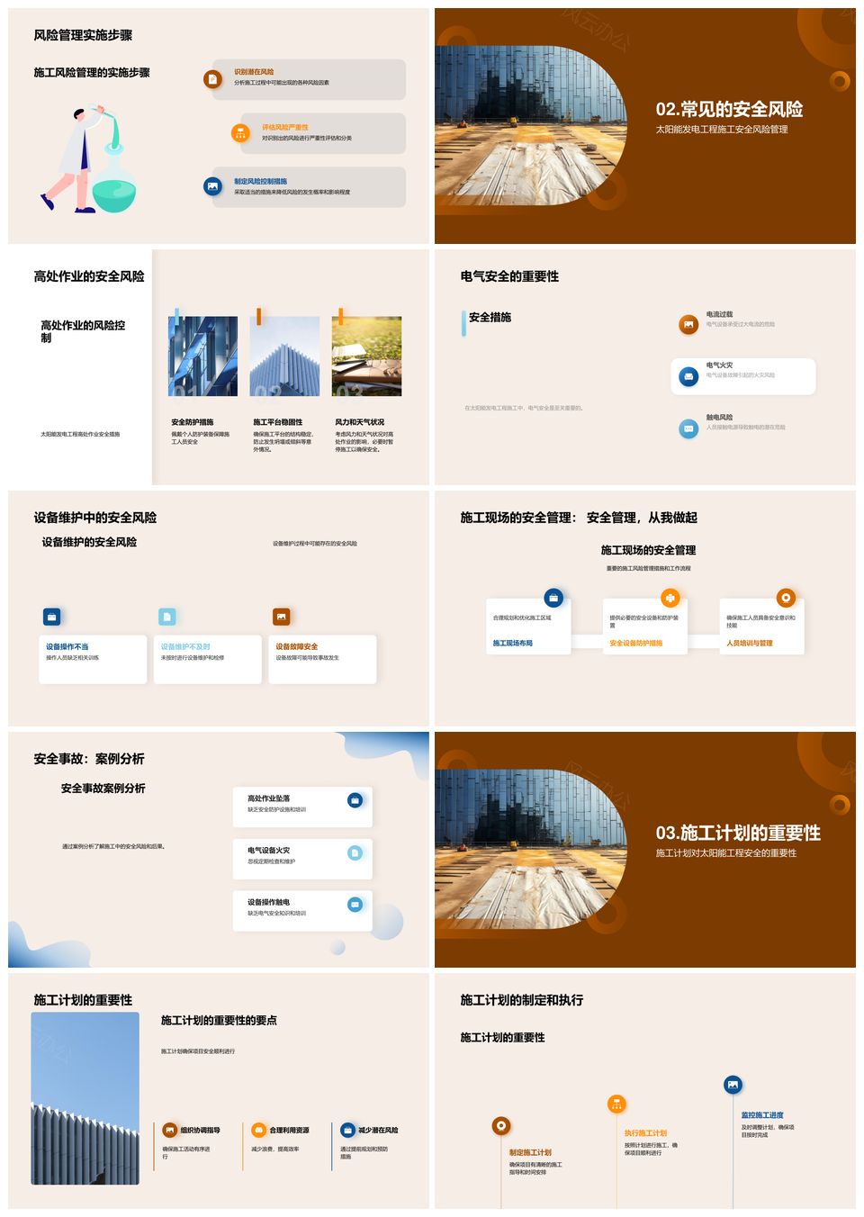 这是一张太阳能施工安全培训强化高空电气风险管控PPT模板,包含太阳能、施工、安全培训、强化、高空、电气、风险、管控等主题内容,也可用作太阳能施工安全培训、施工安全培训强化、安全培训强化高空、培训强化高空电气、强化高空电气风险、高空电气风险管控、太阳能施工安全、施工安全培训、安全培训强化、培训强化高空、强化高空电气、高空电气风险、电气风险管控、太阳能施工、施工安全、安全培训等PPT场景使用。 风云办公提供的太阳能施工安全培训强化高空电气风险管控PPT模板,下载格式为pptx,一共33页,作品中文字及图均可以修改和编辑,图片更改请在作品中右键图片并更换,文字修改请直接点击文字进行修改。