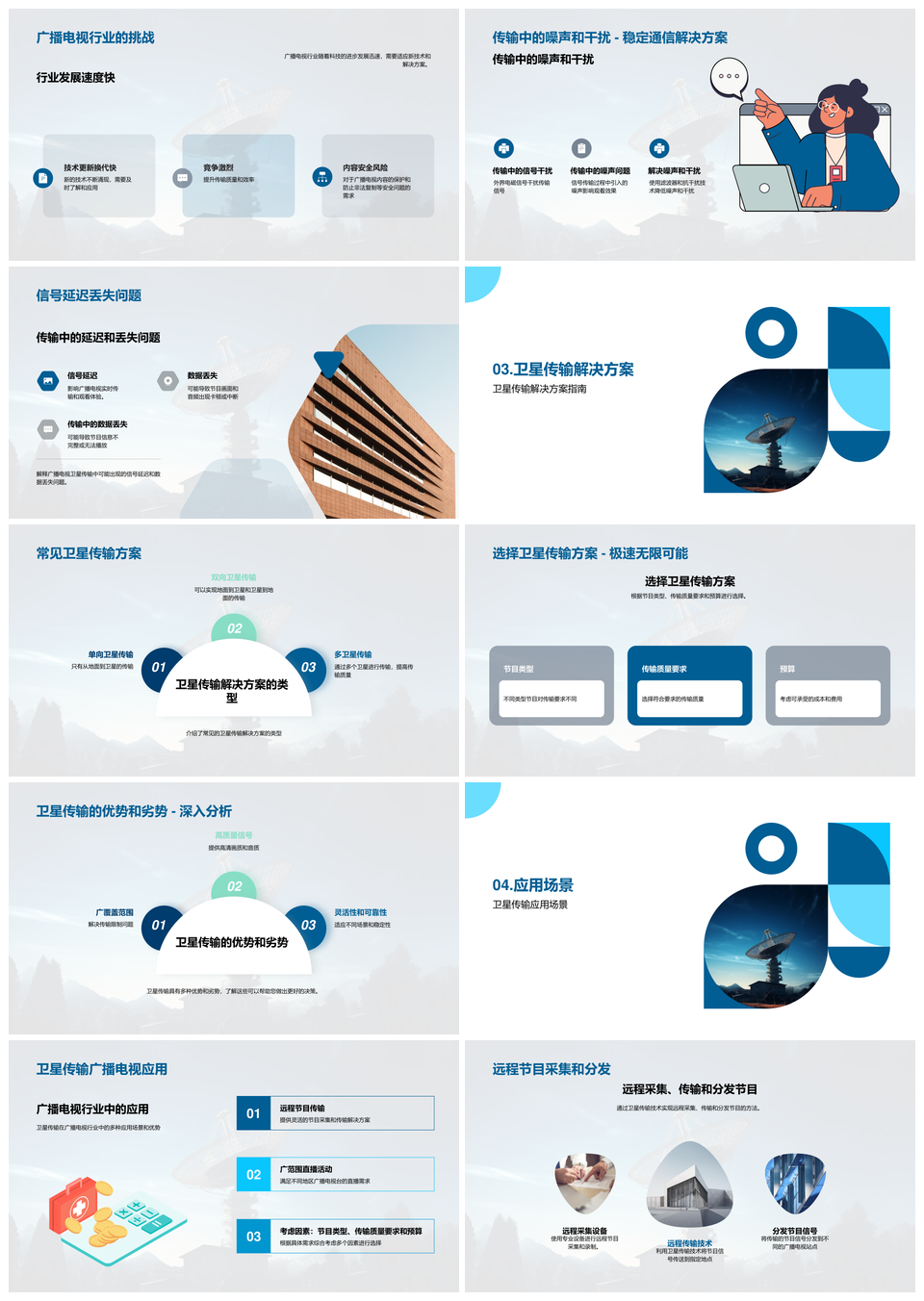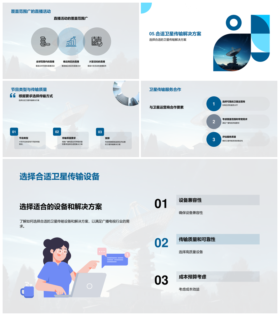 这是一张广播电视卫星传输技术架构协议组成与天线解决方案PPT模板,包含广播电视、卫星、传输、技术架构、协议、组成、天线、解决方案等主题内容,也可用作广播电视卫星传输技术架构、卫星传输技术架构协议、传输技术架构协议组成、技术架构协议组成天线、协议组成天线解决方案、广播电视卫星传输、卫星传输技术架构、传输技术架构协议、技术架构协议组成、协议组成天线、组成天线解决方案、广播电视卫星、卫星传输、传输技术架构、技术架构协议等PPT场景使用。 风云办公提供的广播电视卫星传输技术架构协议组成与天线解决方案PPT模板,下载格式为pptx,一共23页,作品中文字及图均可以修改和编辑,图片更改请在作品中右键图片并更换,文字修改请直接点击文字进行修改。