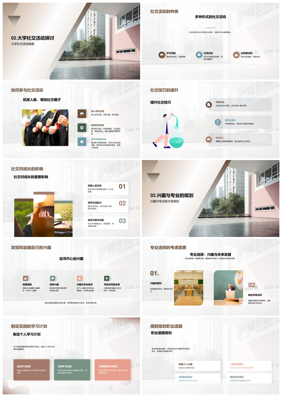2025大学生活规划社交拓展目标兴趣培养职业准备PPT模板