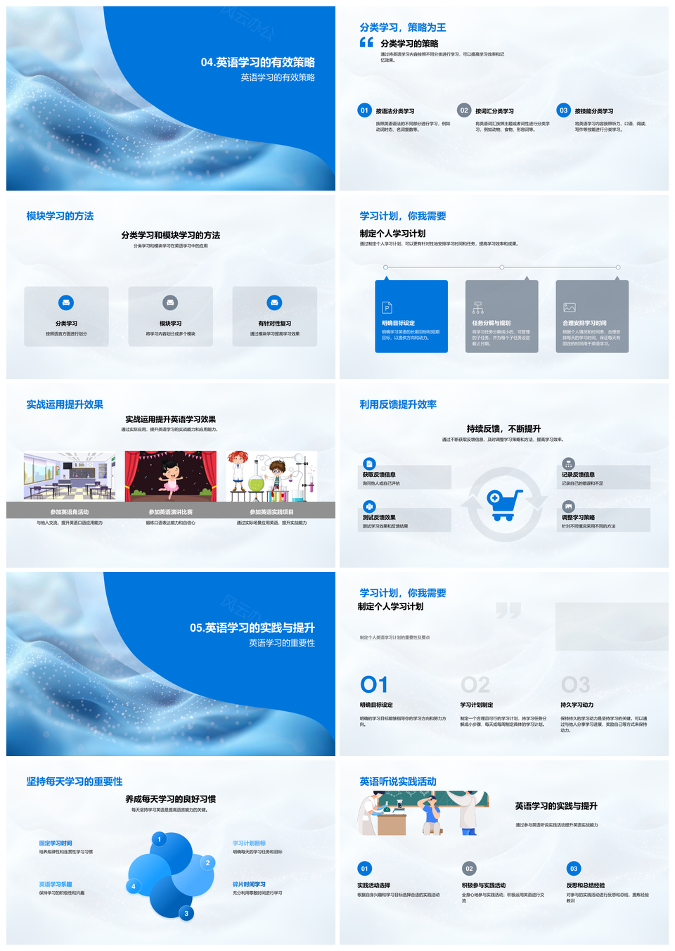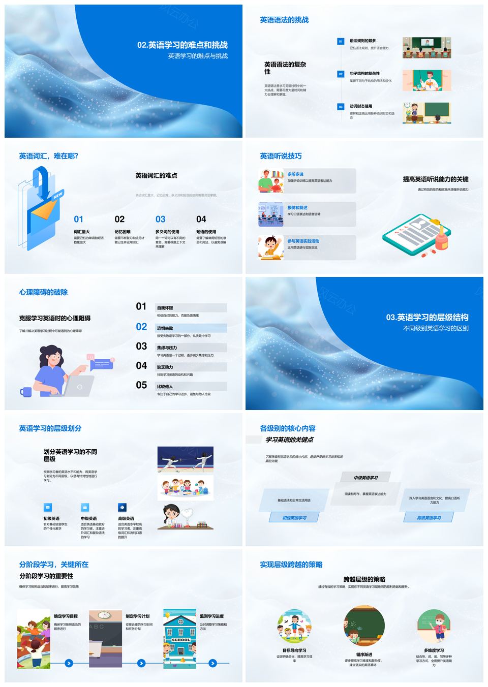 风云办公提供的高效英语分阶学习提升就业听说能力PPT模板,下载格式为pptx,一共29页,作品中文字及图均可以修改和编辑,图片更改请在作品中右键图片并更换,文字修改请直接点击文字进行修改。