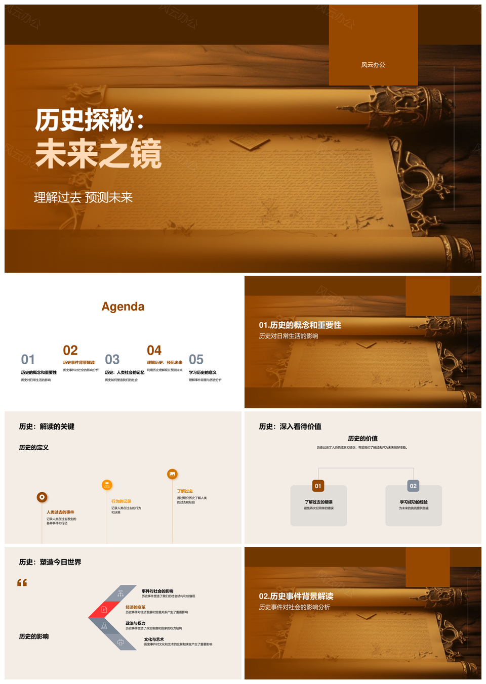 历史探秘未来之镜映照社会影响PPT模板推荐