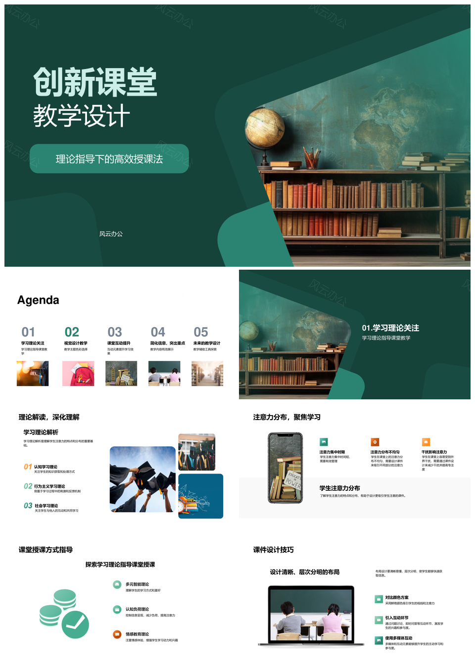 创新课堂设计学习理论视觉互动多媒体内容展示黑板PPT模板推荐