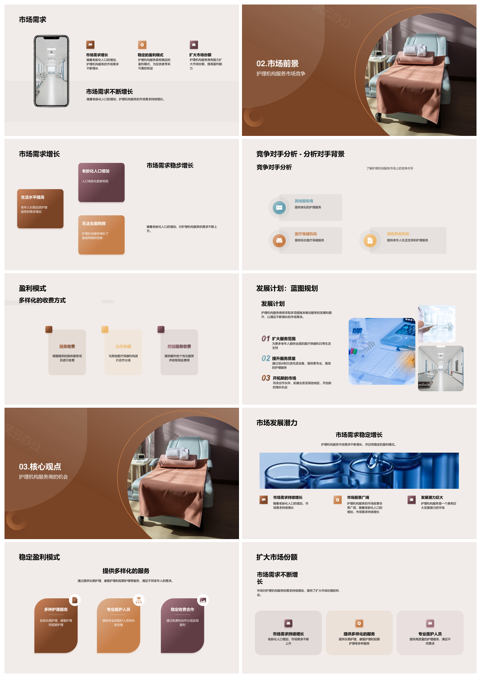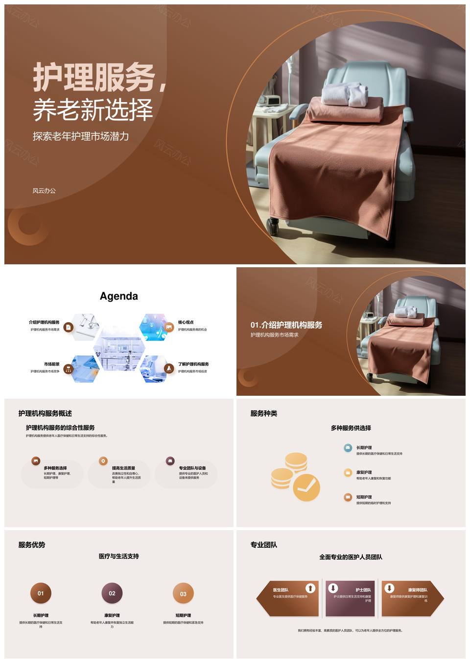 风云办公提供的护理机构服务助力老年人医养生活需求PPT模板,下载格式为pptx,一共24页,作品中文字及图均可以修改和编辑,图片更改请在作品中右键图片并更换,文字修改请直接点击文字进行修改。