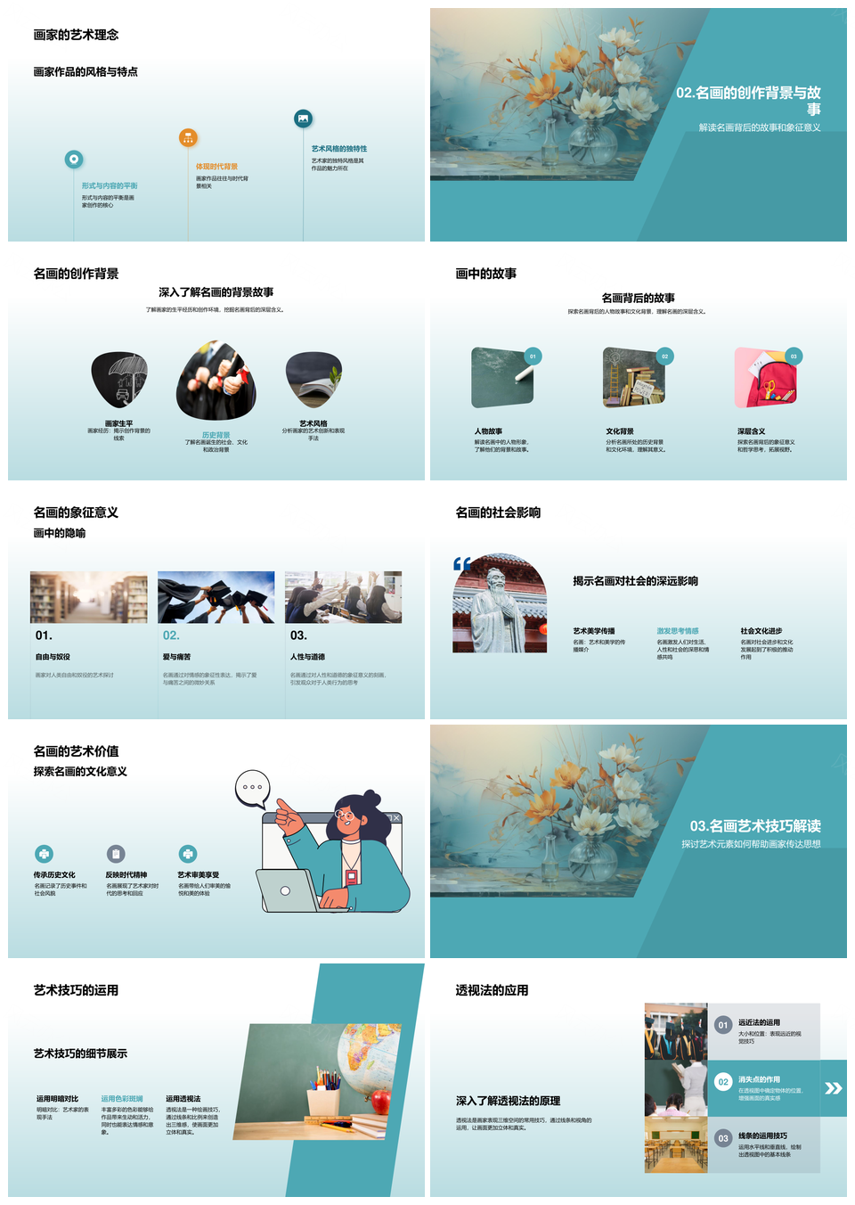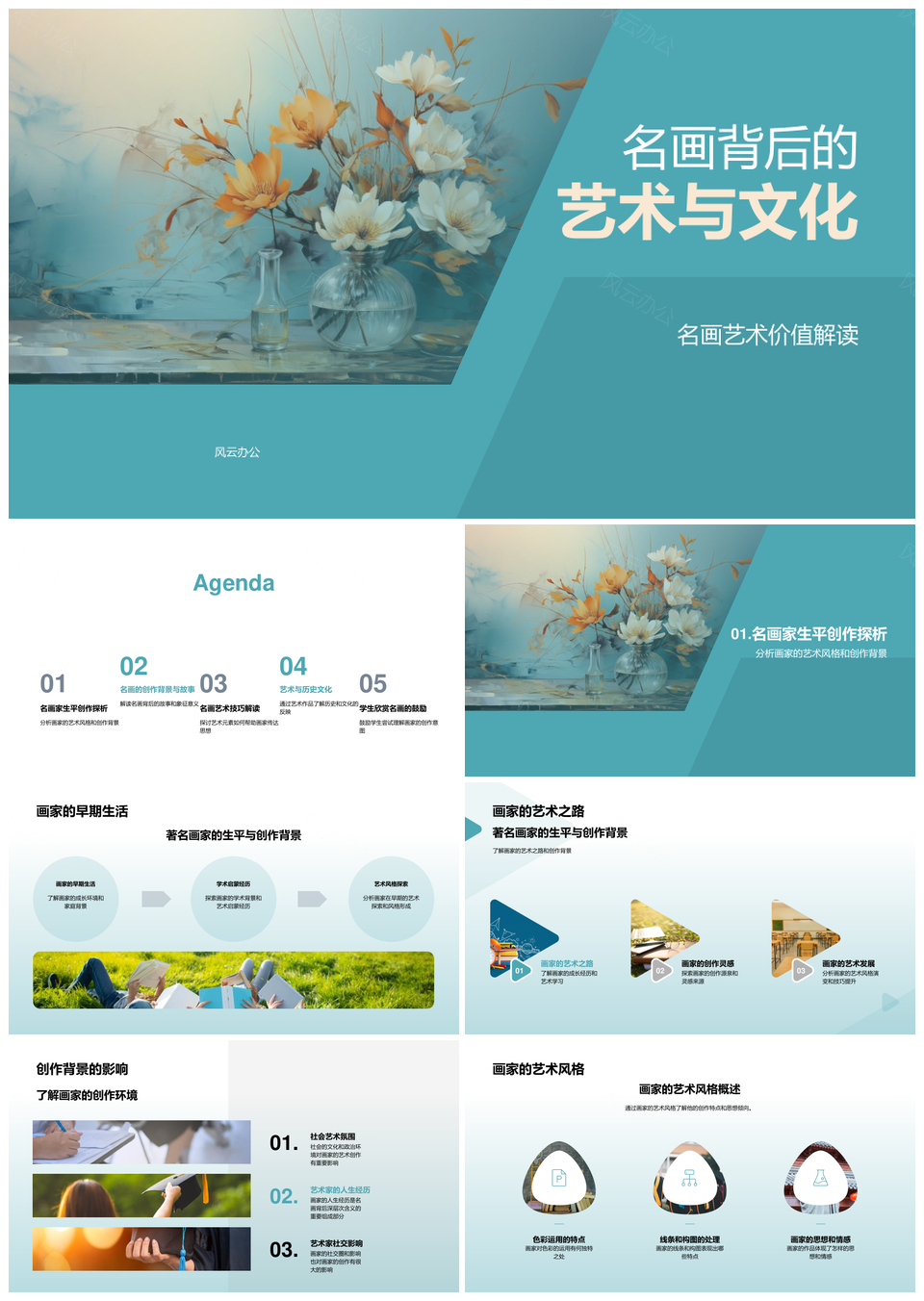 风云办公提供的名画艺术文化价值与创作背景风格解析PPT模板,下载格式为pptx,一共33页,作品中文字及图均可以修改和编辑,图片更改请在作品中右键图片并更换,文字修改请直接点击文字进行修改。